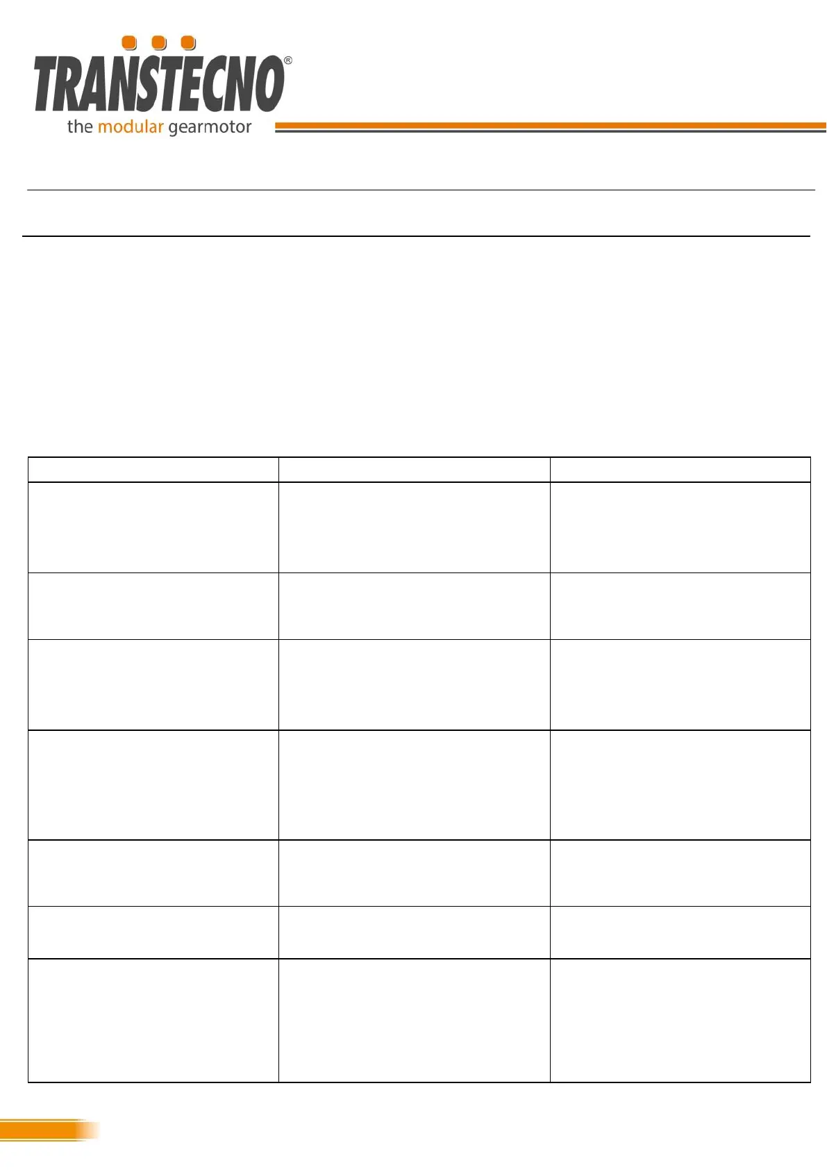 few hours of operation, contact Transtecno’s After Sales