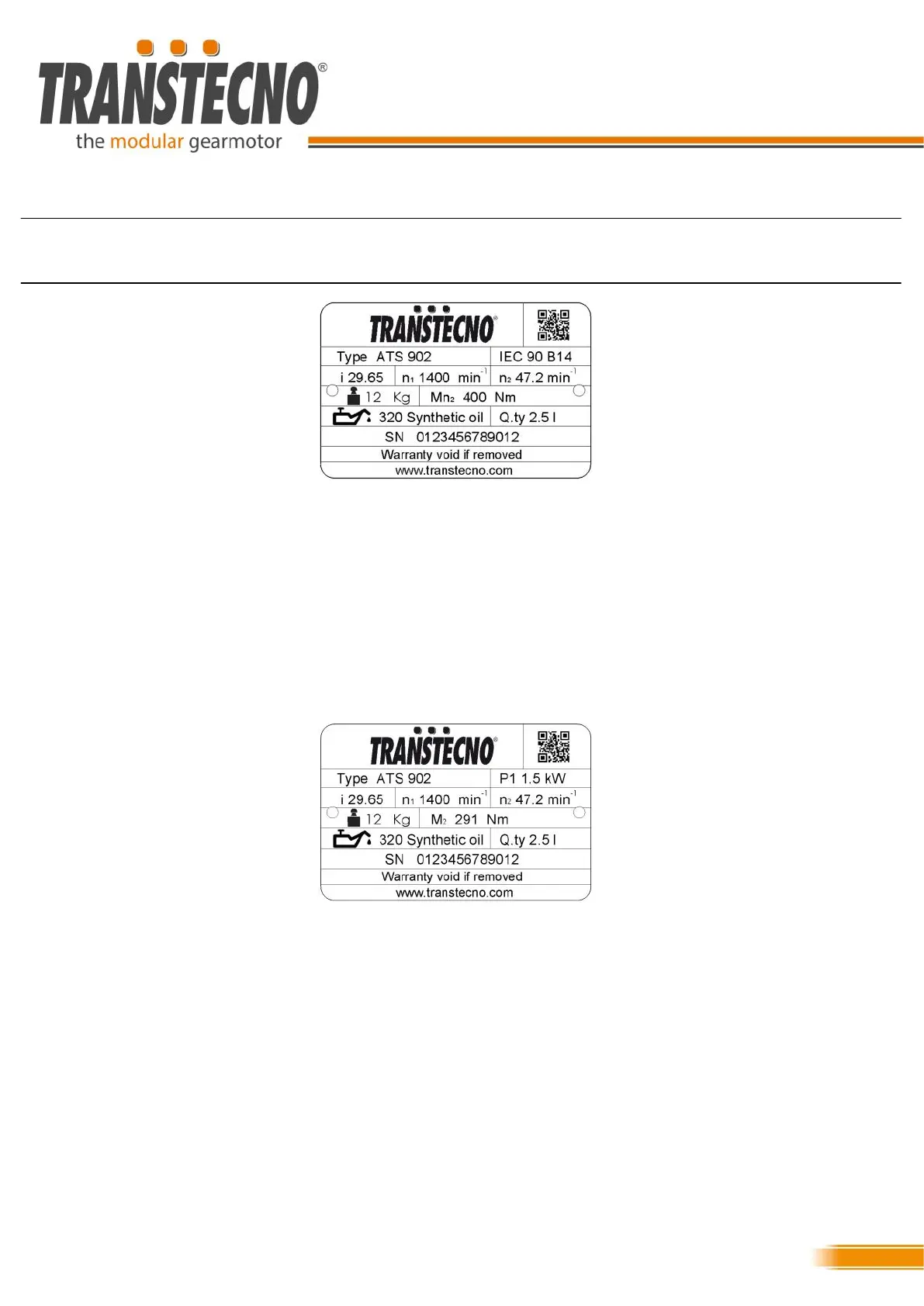 Type of gearmotor bearing the nameplate: ATS