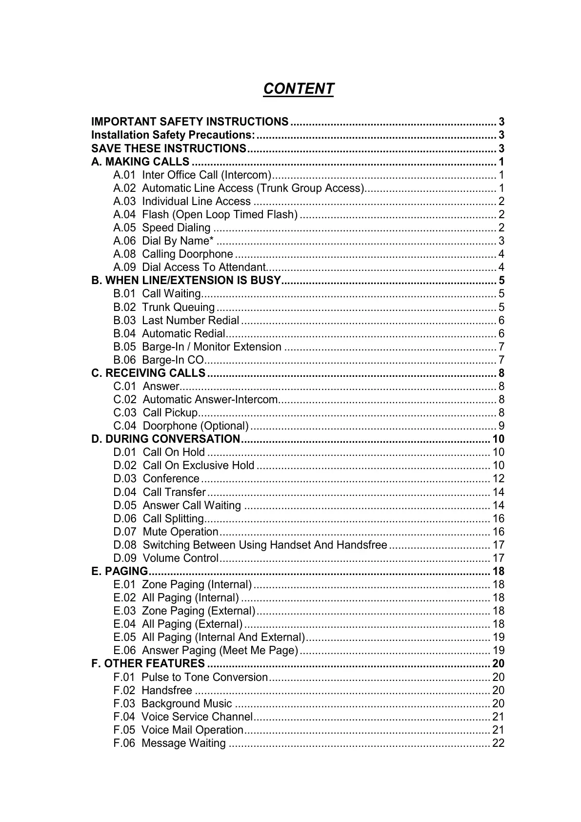 A.01 Inter Office Call (Intercom)......................................................................... 1
