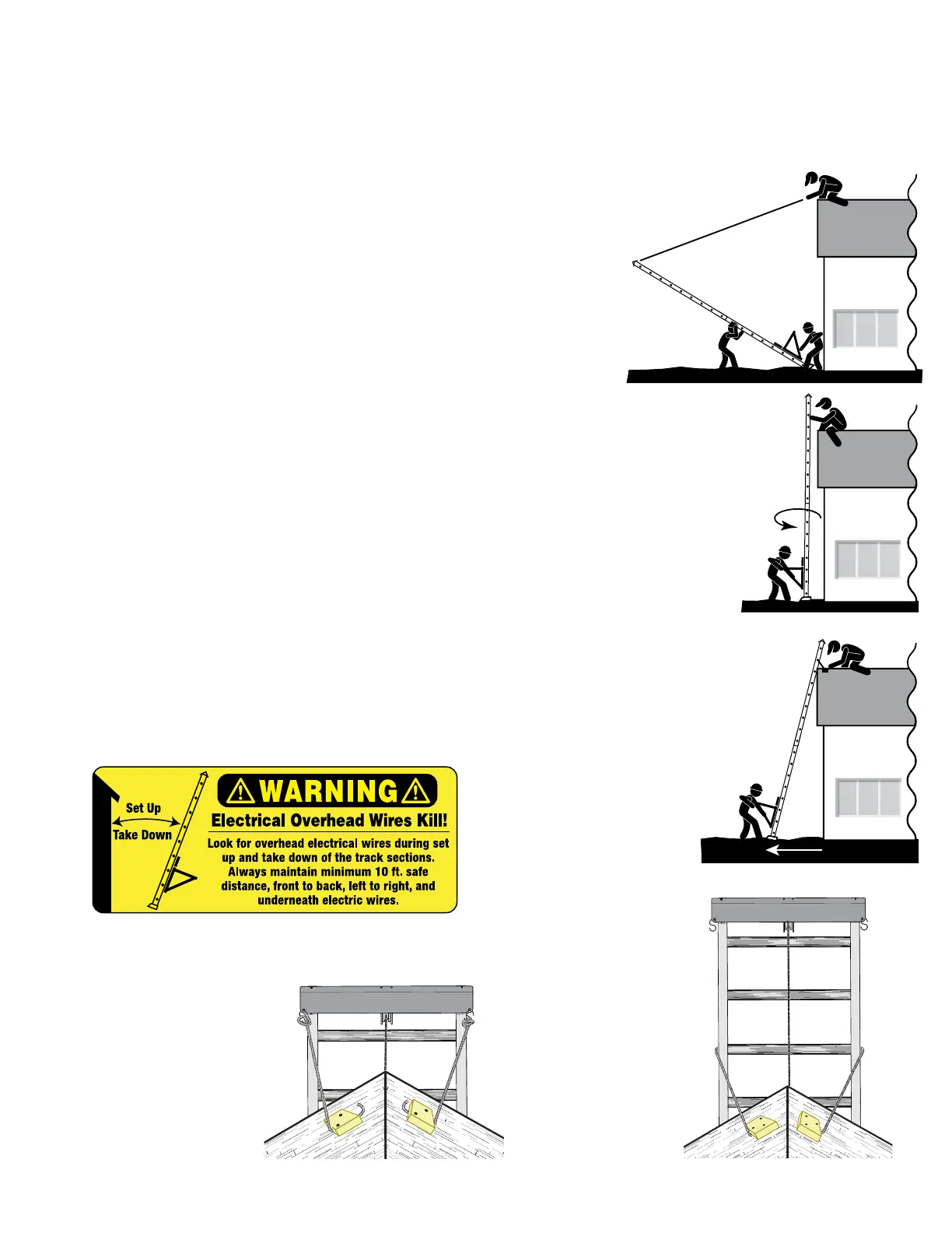 BE AWARE OF OVERHEAD WIRES BEFORE RAISING TRACK SECTIONS. ELECTRICITY KILLS!