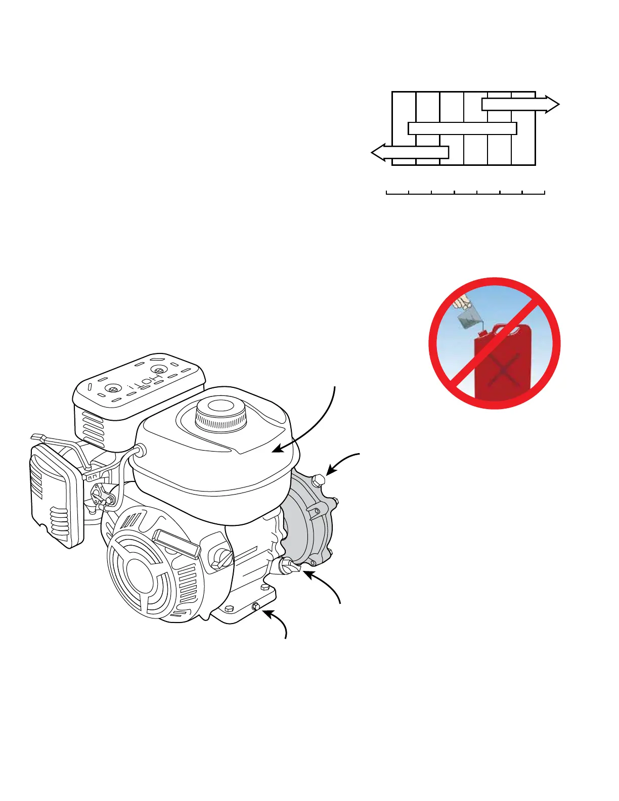 Do not add gasoline to engine when running or hot - allow to cool