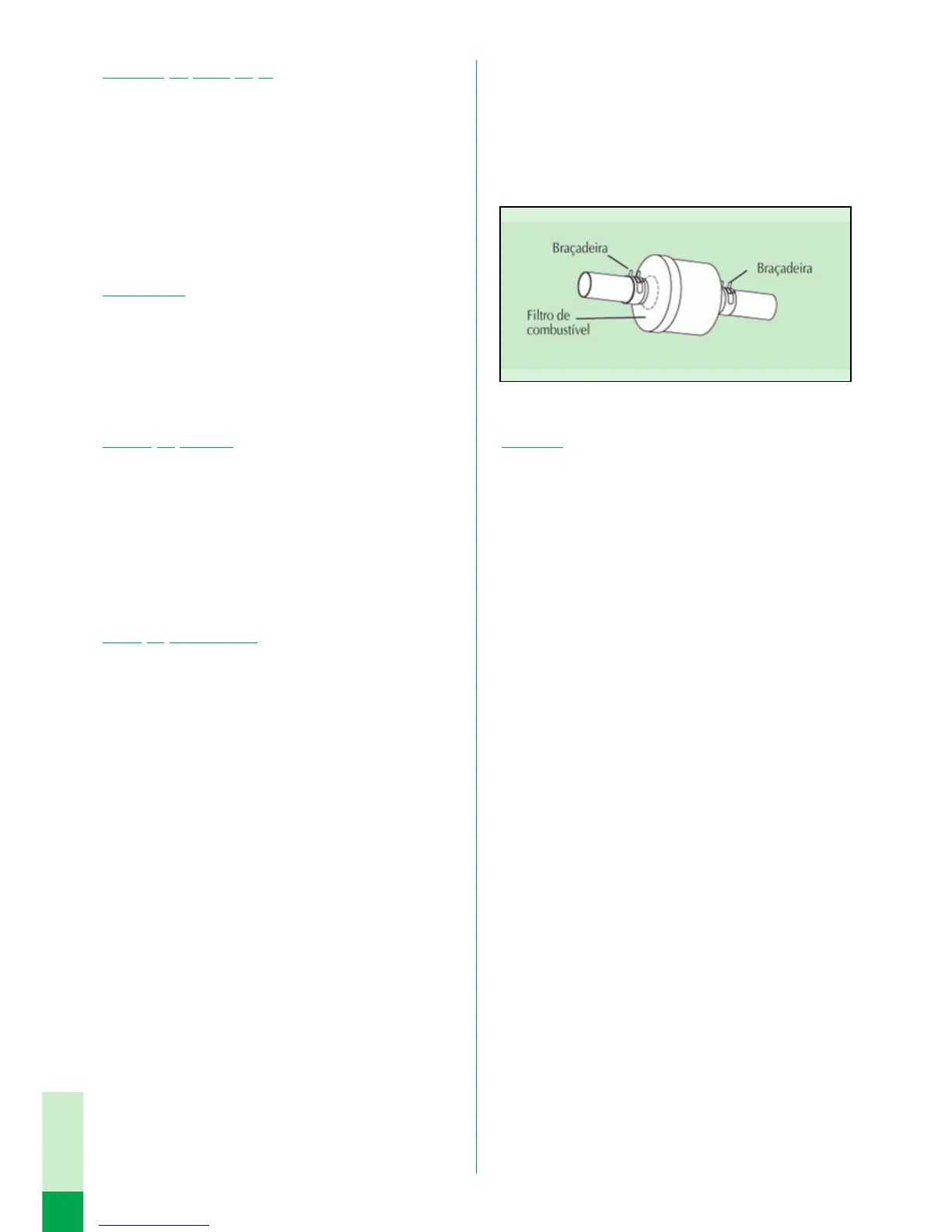 combustível e se as braçadeiras estão