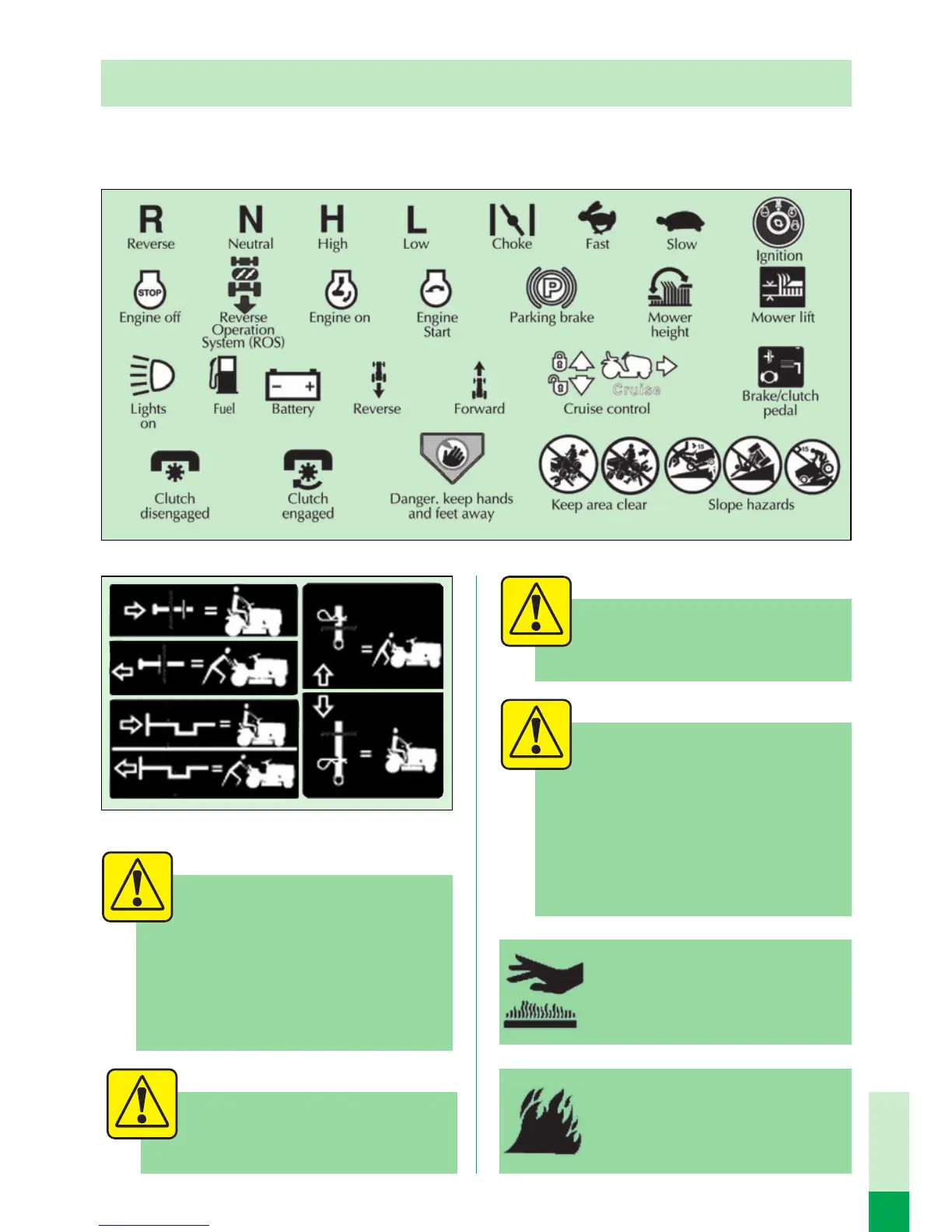 These symbols may appear on your tractor or in the literature supplied with the product. Try to