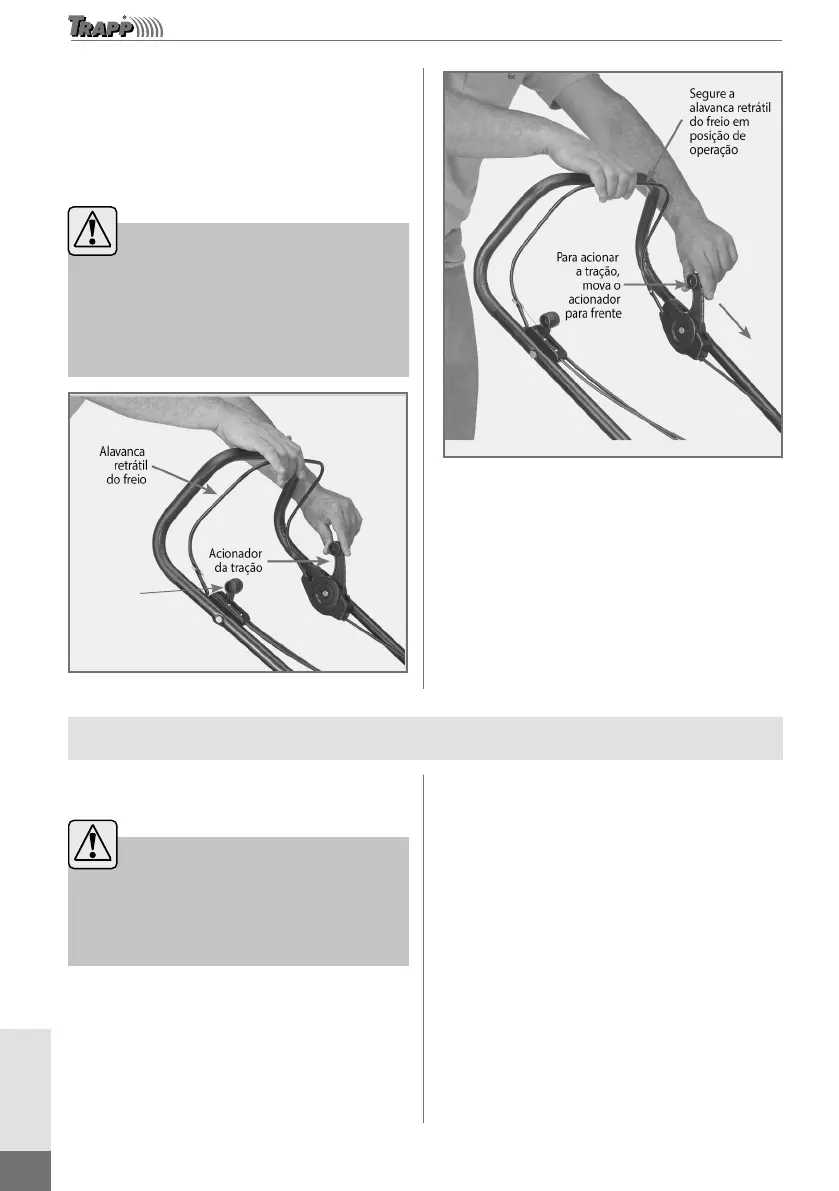 a alavanca retrátil do freio aproximadamente 5 cm.