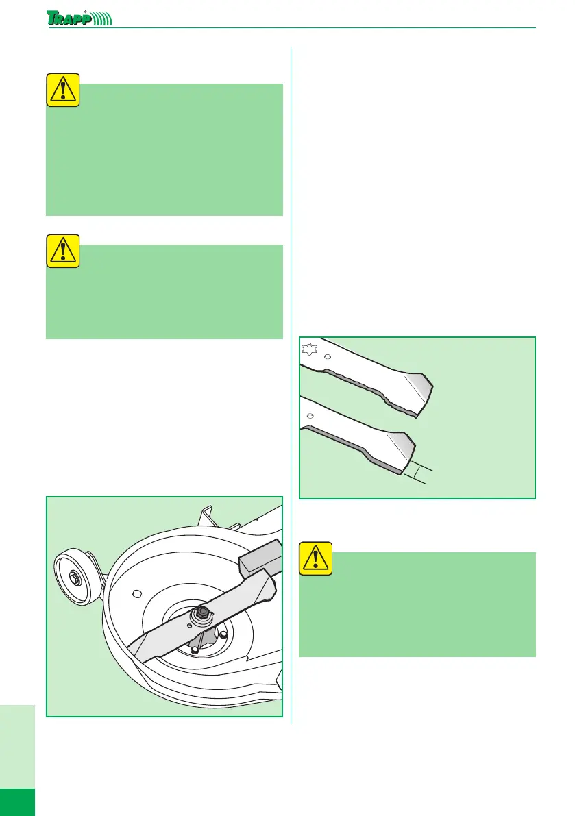 mowing blades to sharpen or change them. Protect