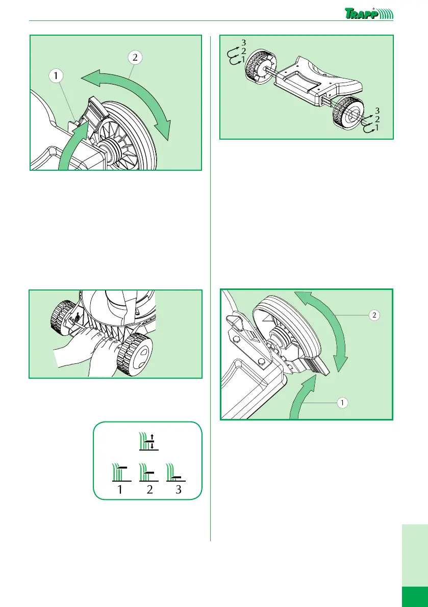 Para ajuste da altura de corte, puxe o eixo da roda