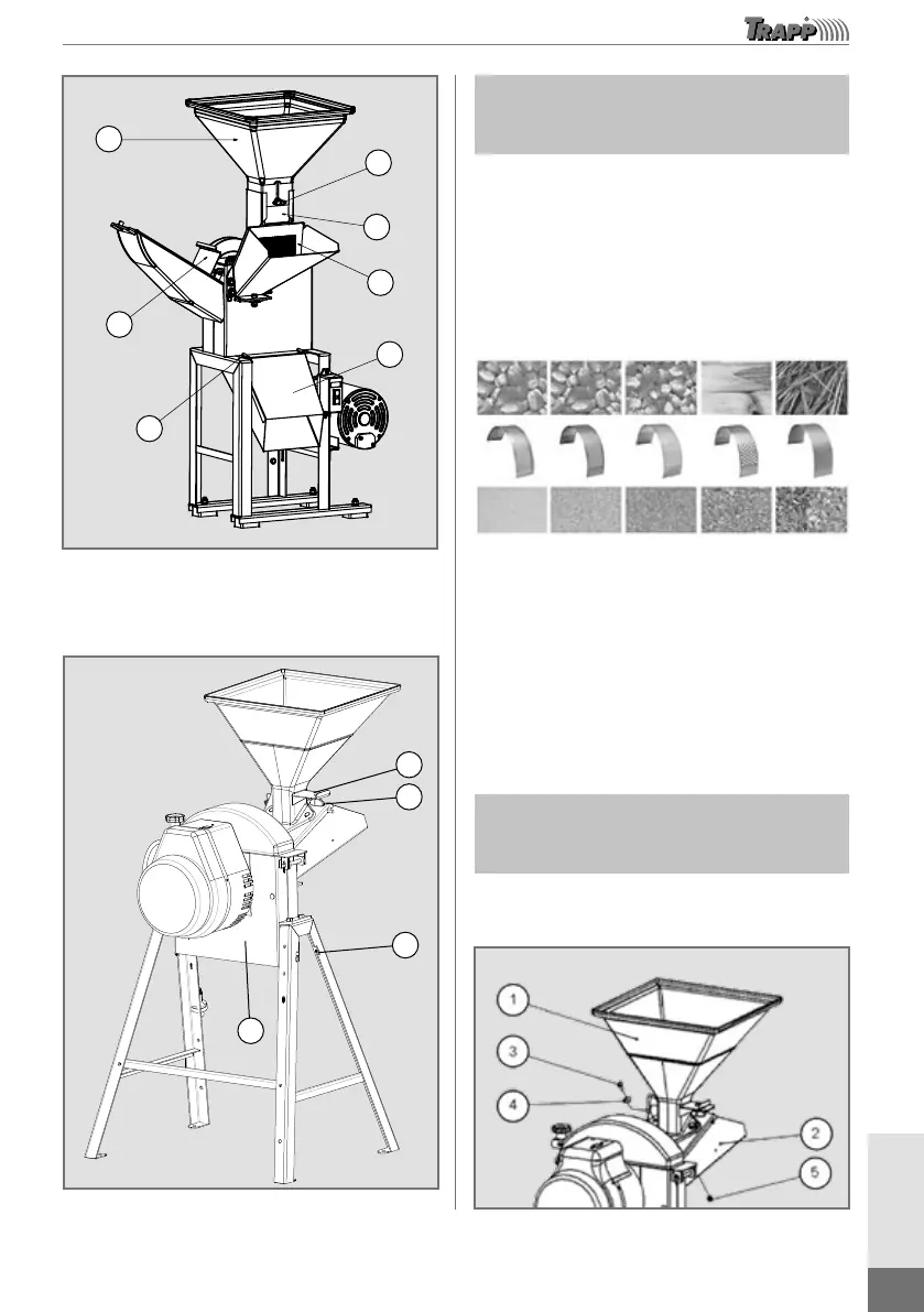 Coloque el embudo del grano (1) sobre el embudo