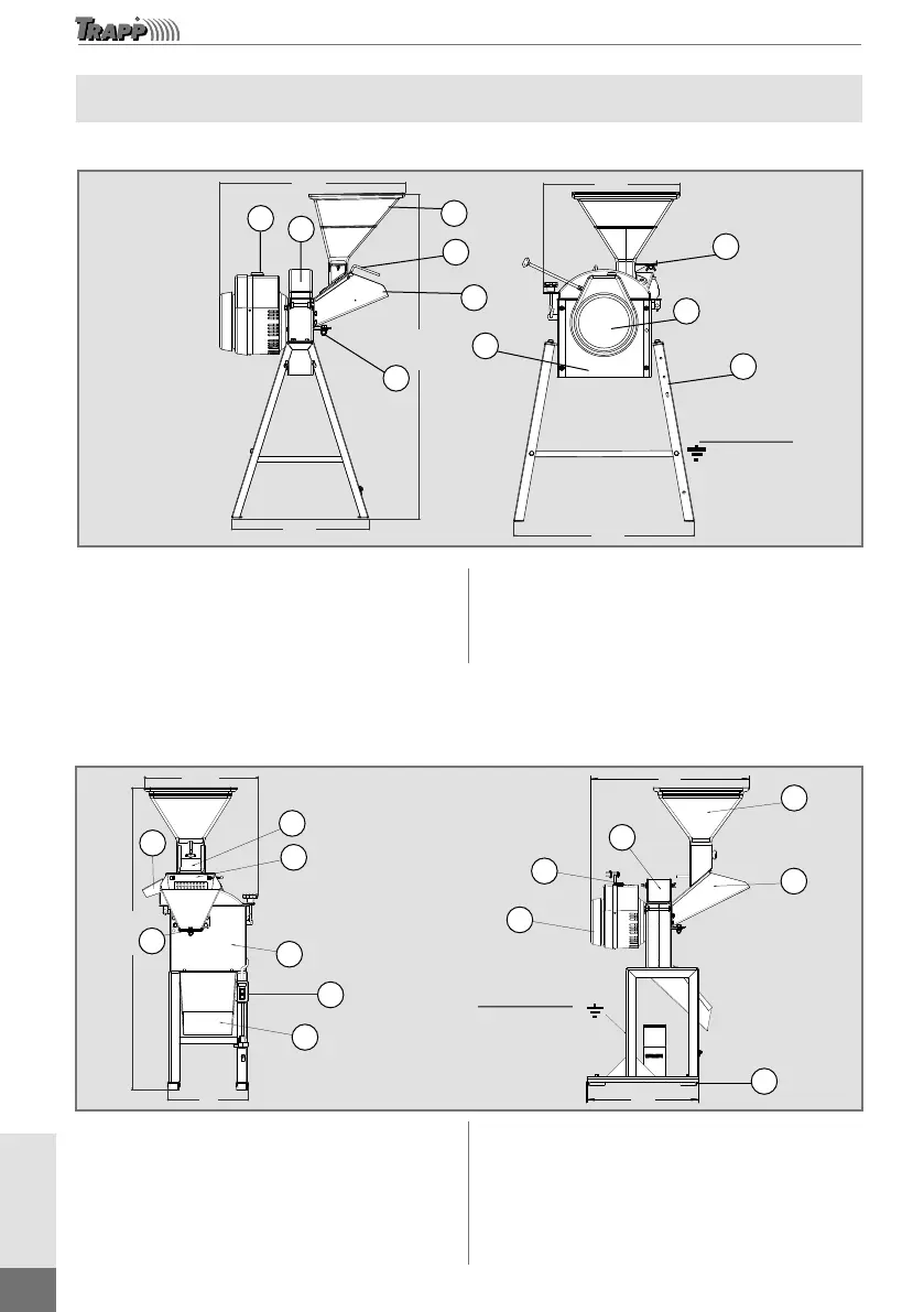 Note: Models TRF 50, TRF 60 and TRF 70 are provided with just one lower material outlet. Models TRF 80M and