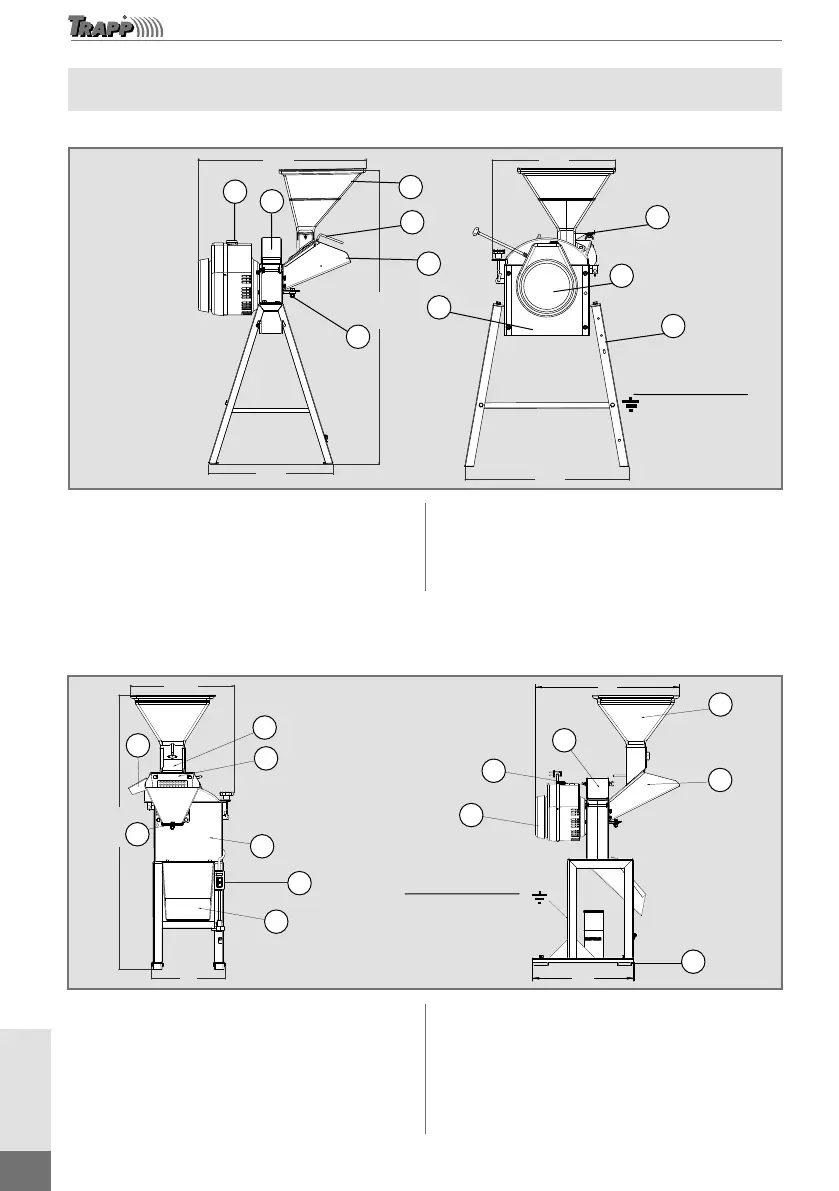 Nota: Modelos TRF 50, TRF 60 e TRF 70 possuem apenas a saída inferior de material. Modelos TRF 80M e TRF 400F