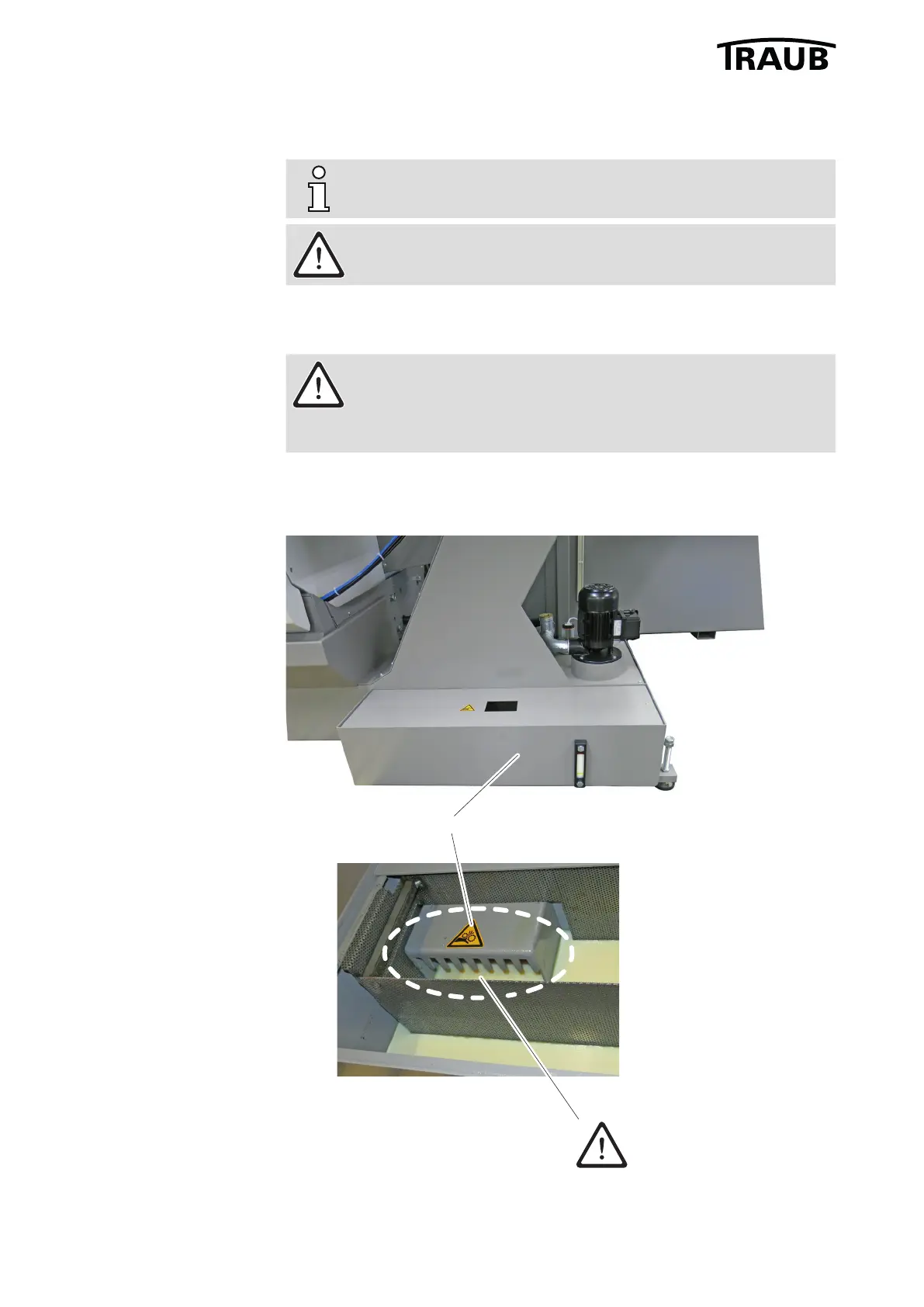 Beware of injuries when reaching into the chain guide.
