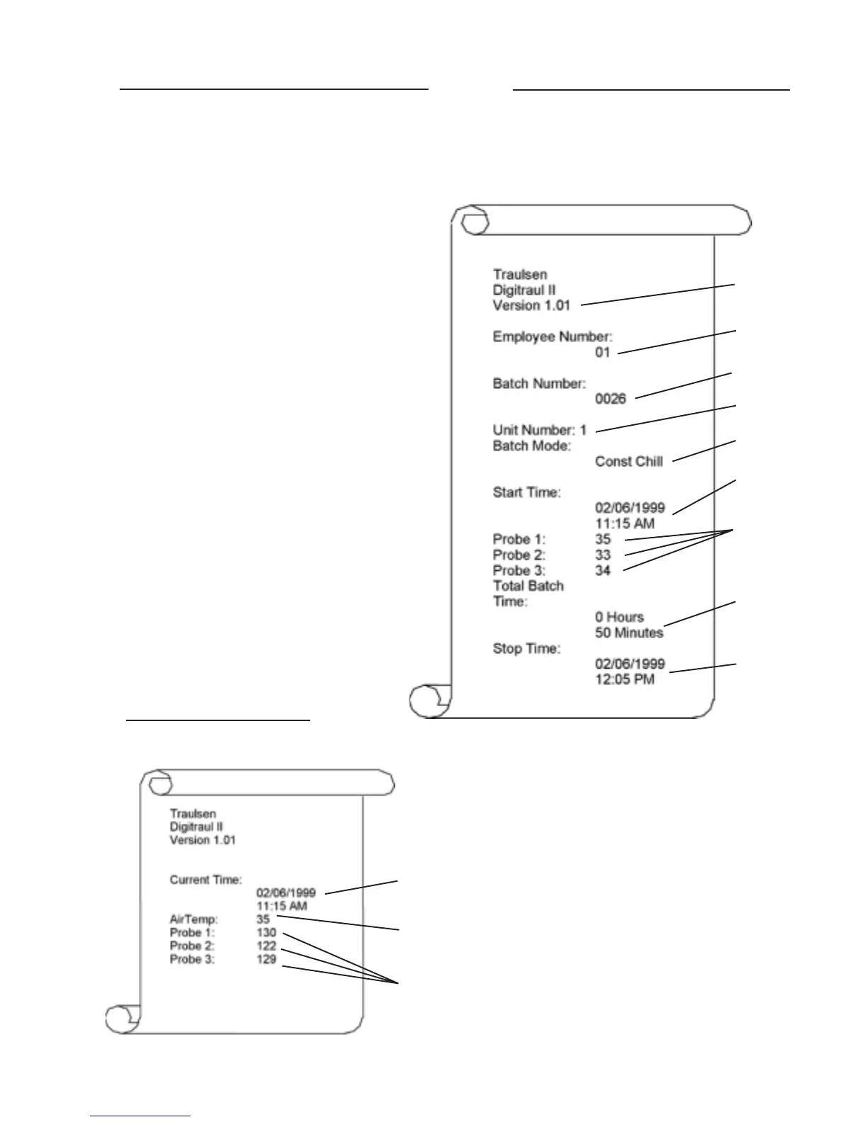 or unplugged food probe will print -99°F (-73°C).
