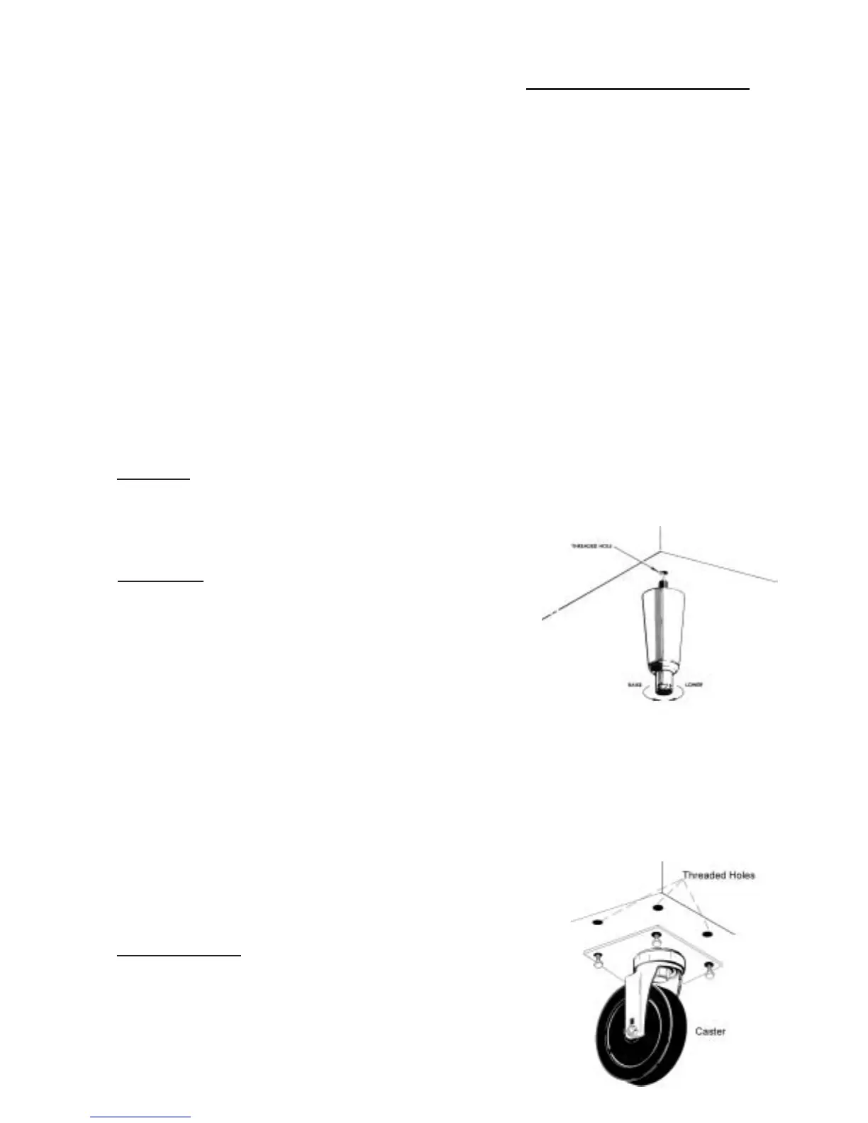 III. d - INSTALLING LEGS OR CASTERS: