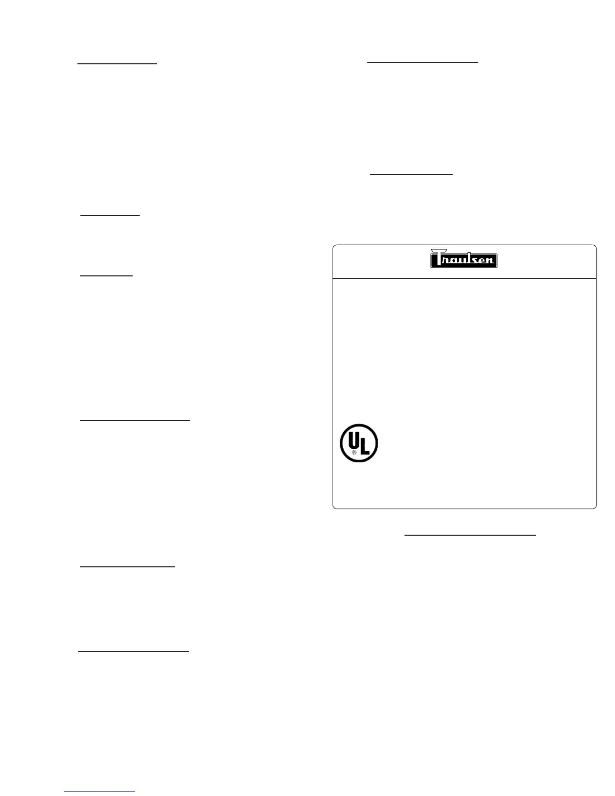 This manual applies to the following Traulsen models: