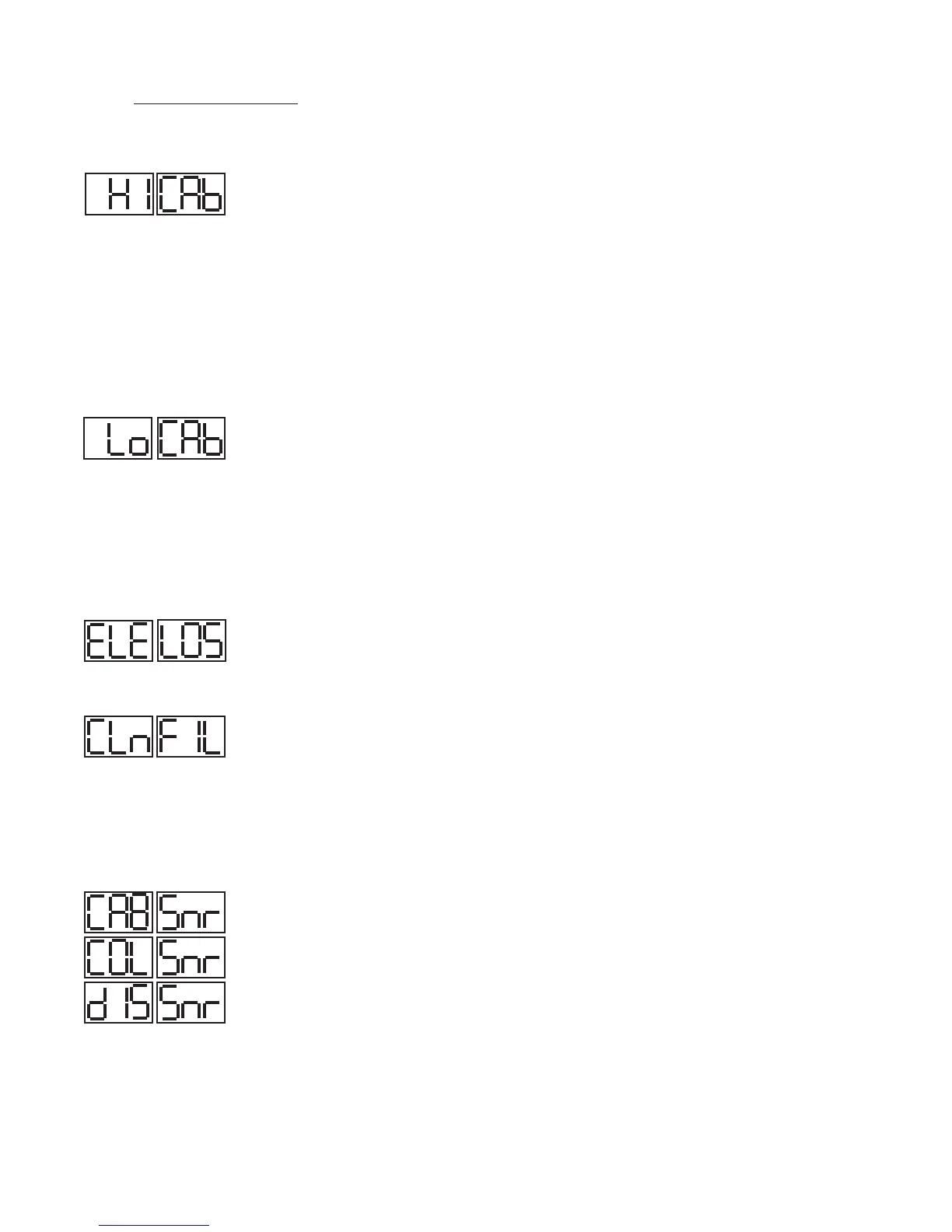 The audible alarm will sound and the display will read CAB Snr, COL Snr or DIS Snr when that particular sensor has failed to operate. To turn off the audible