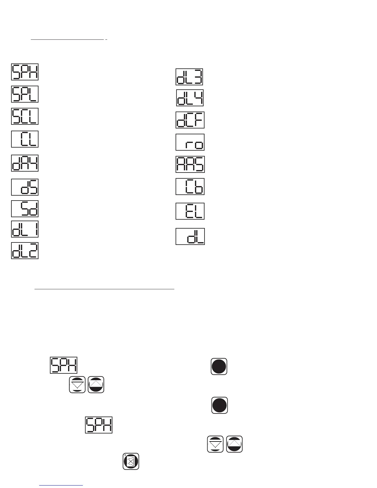 Listed below are the available parameters in the order they appear, using the down arrow key on the controller. You can