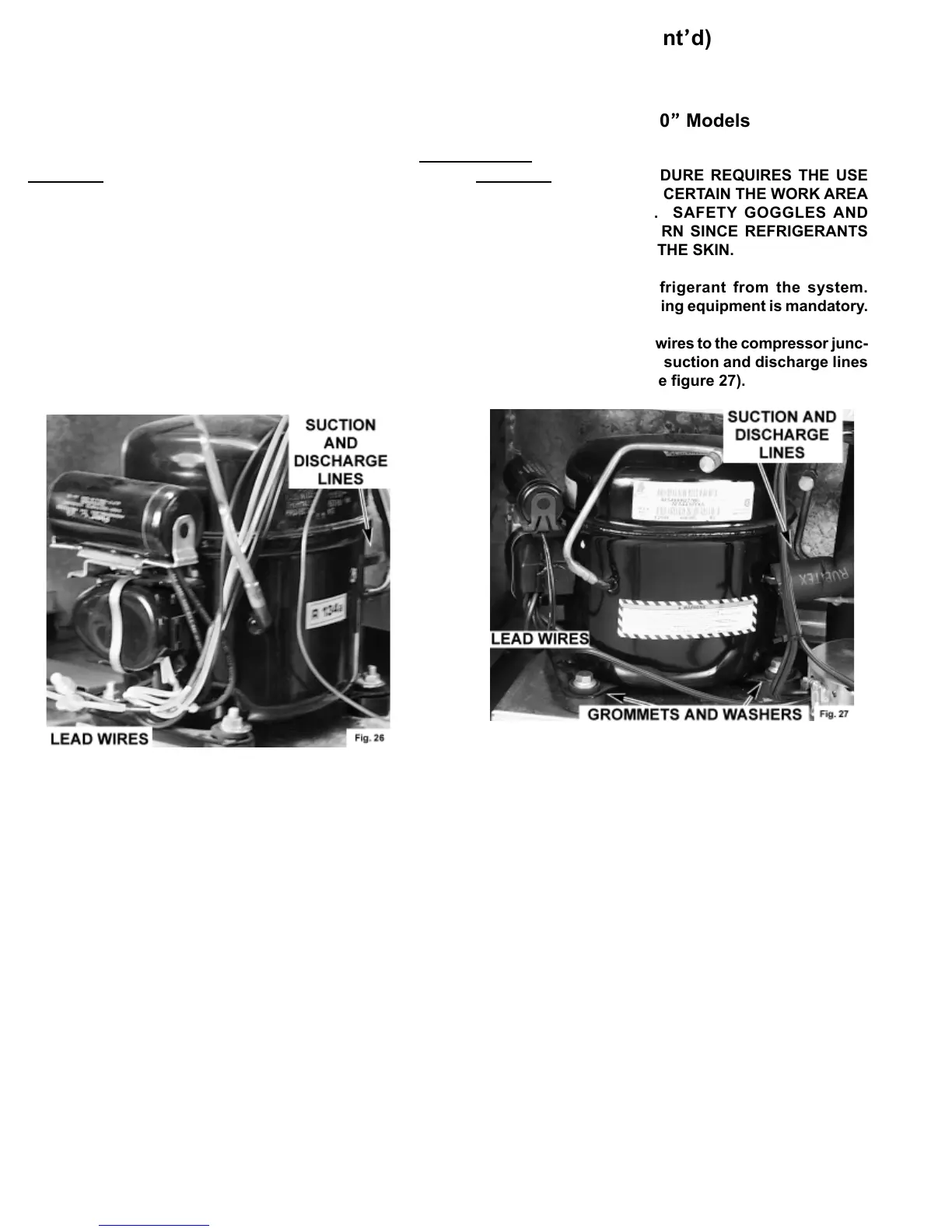 Next disconnect the lead wires to the compressor junc-