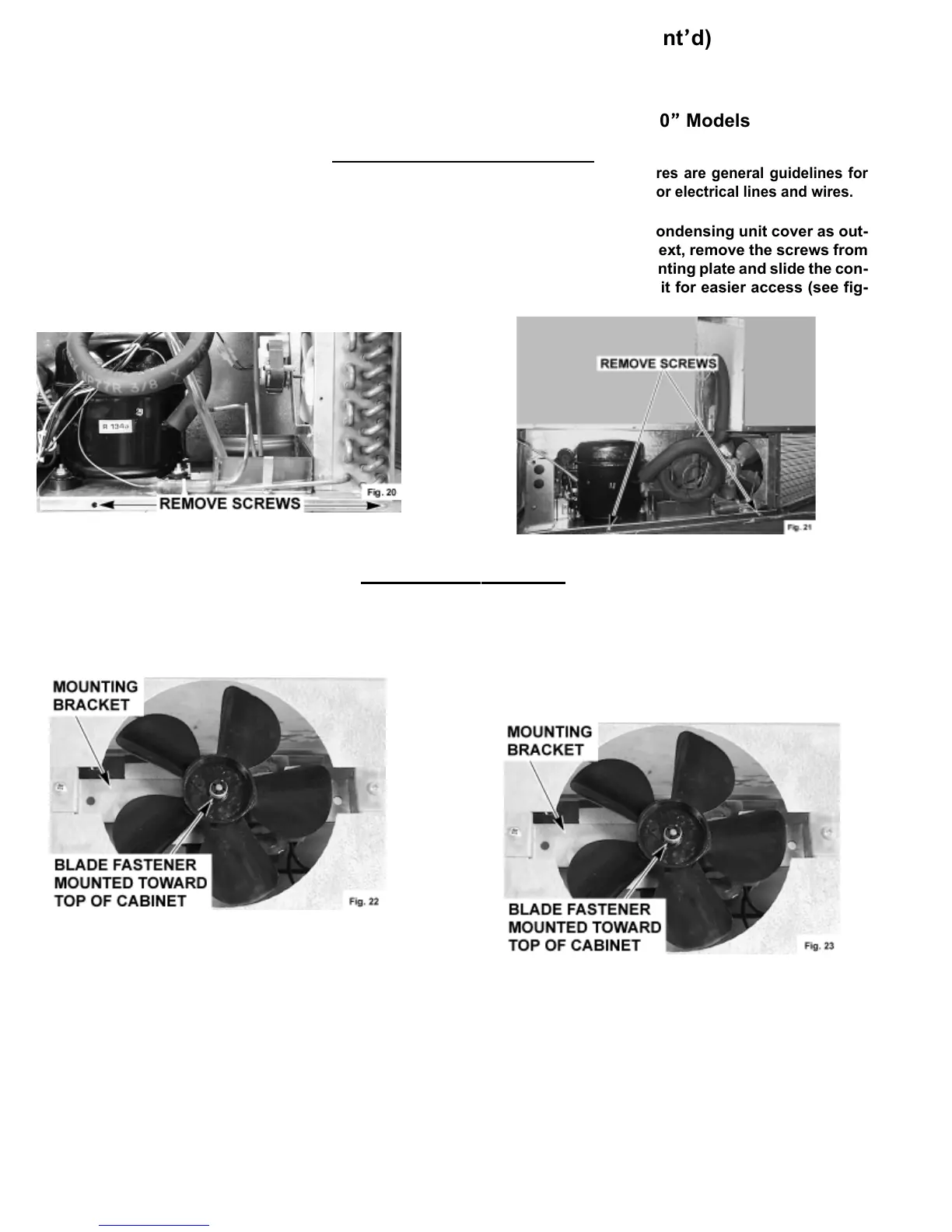 replacement of condensing unit components. Don’t damage any connected refrigeration or electrical lines and wires.