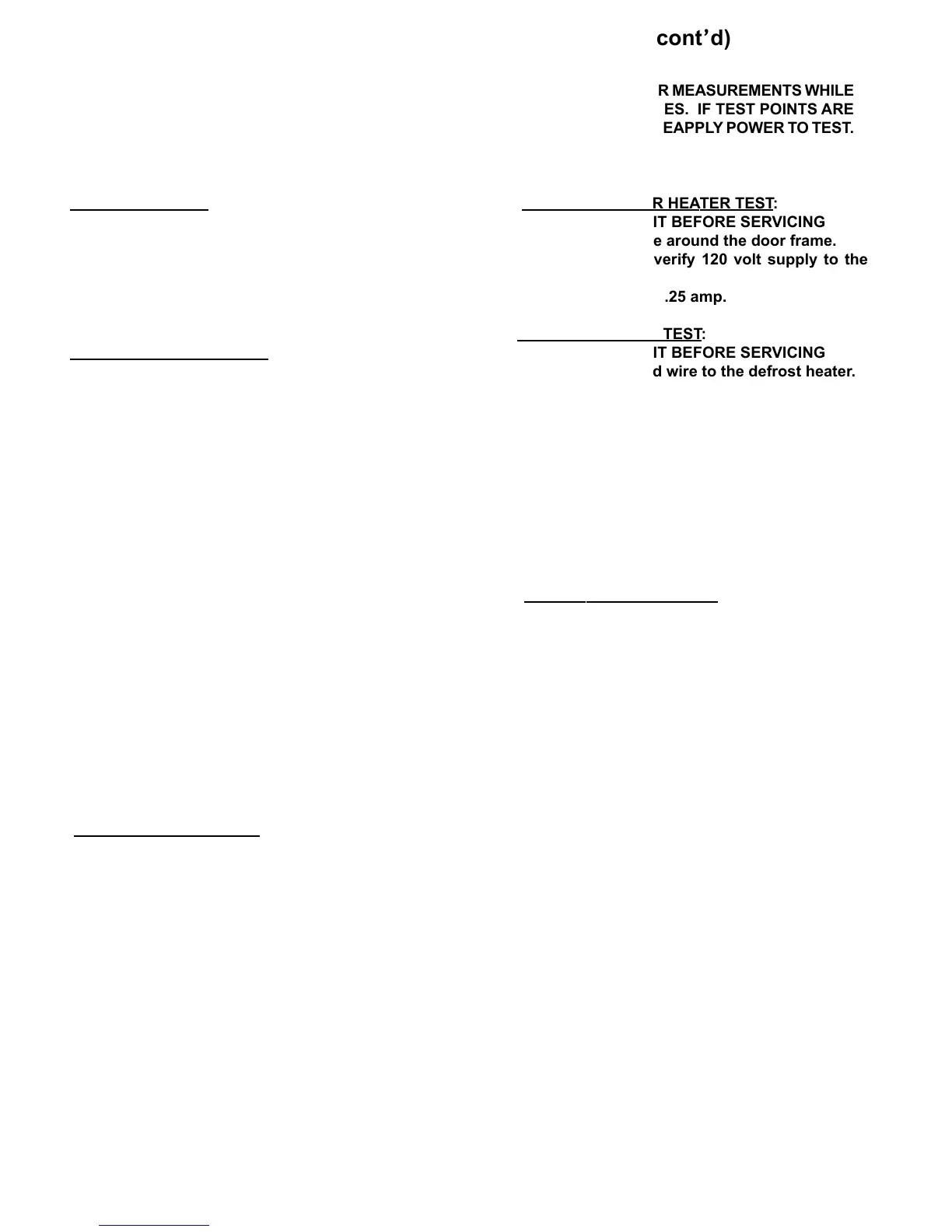 DEFROST HEATER TEST: