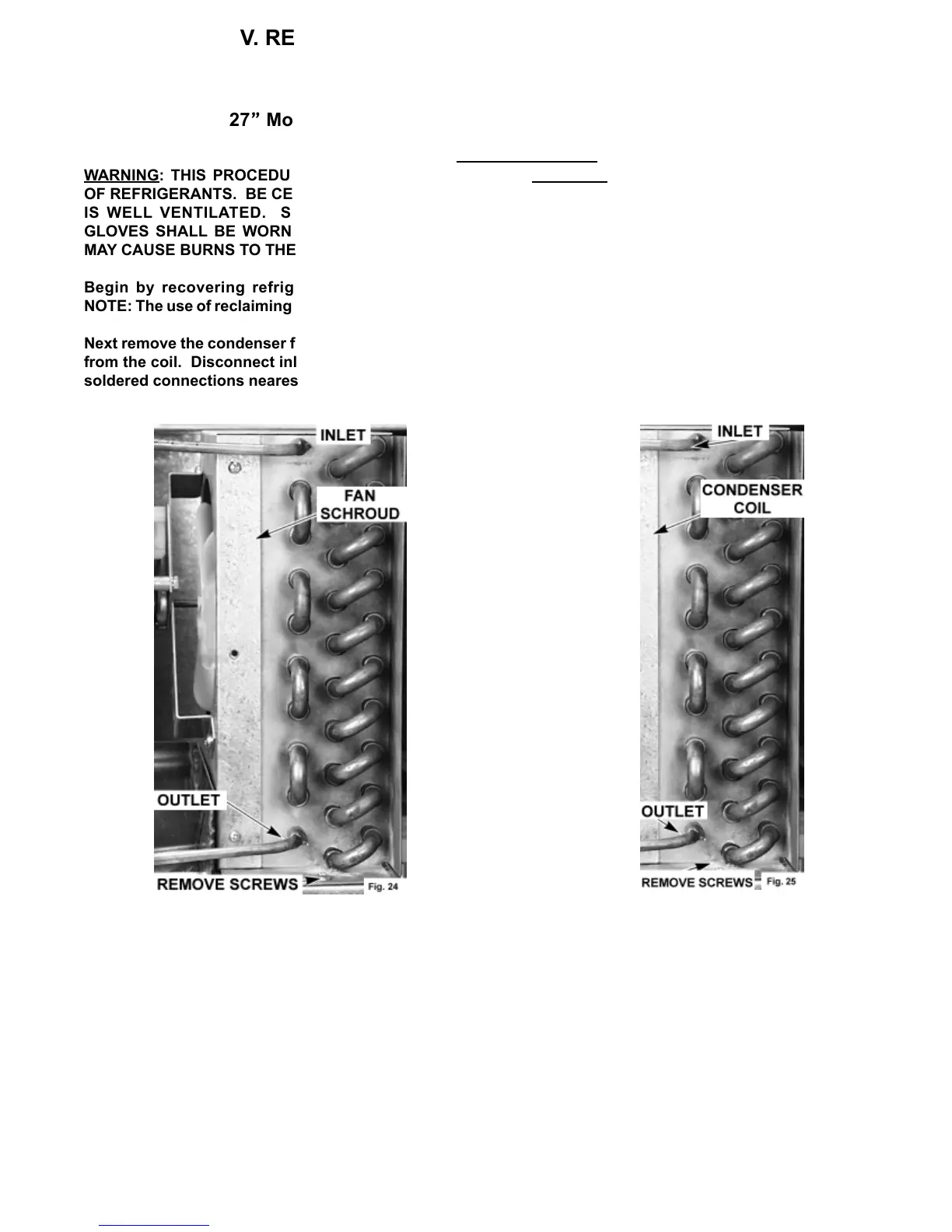replacement of condensing unit components. Don’t damage any connected refrigeration or electrical lines and wires.