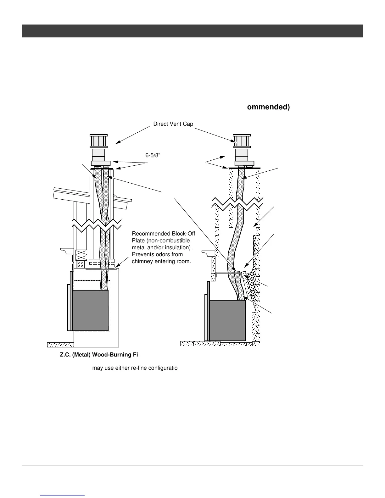 NOTE: You may use either re-line configuration with a masonry or zero-clearance fireplace.