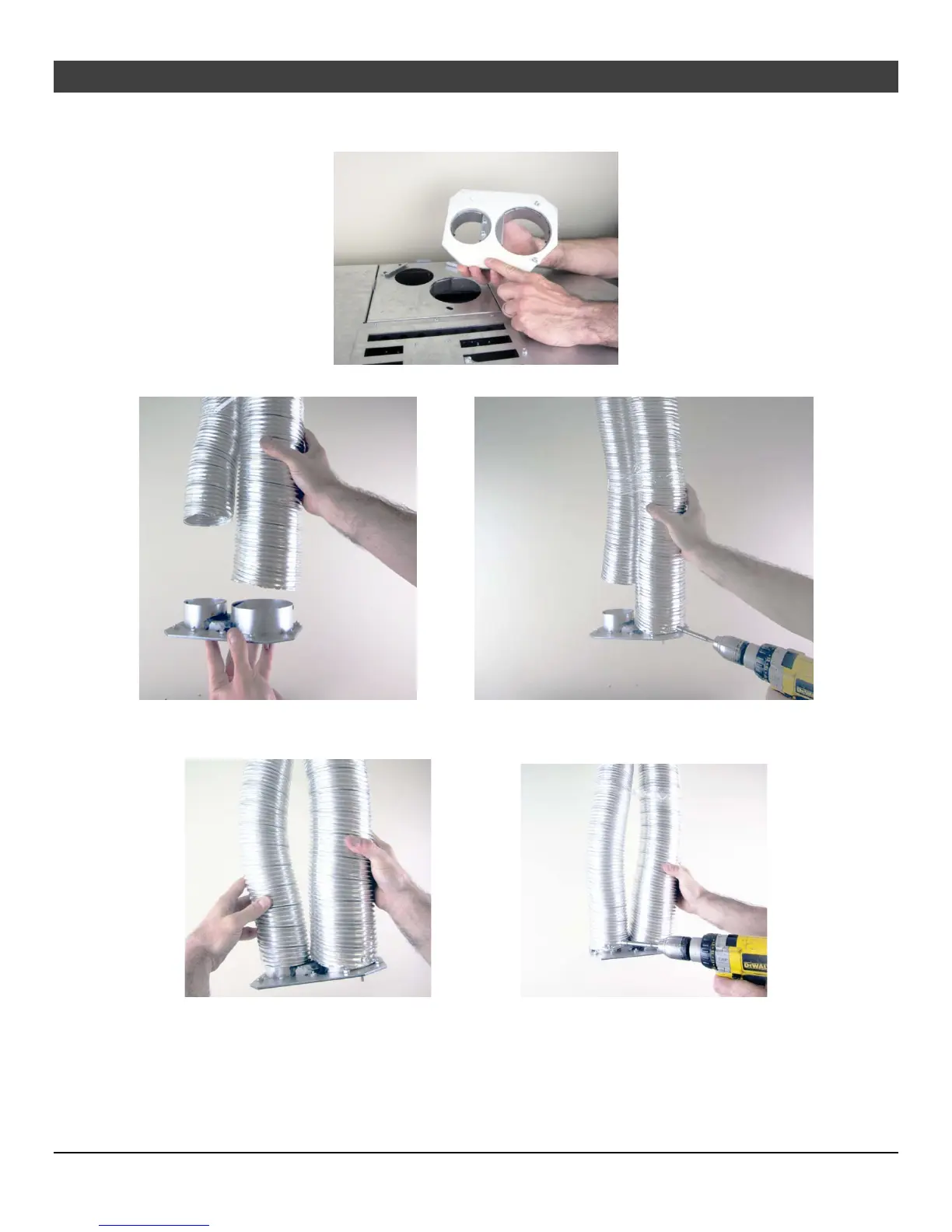 5. Attach the 4” exhaust vent to the connector and secure with at least 3 screws.