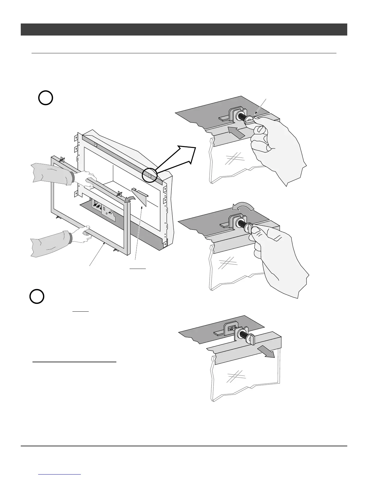 c) Lift the glass frame slightly and attach the lower latches.
