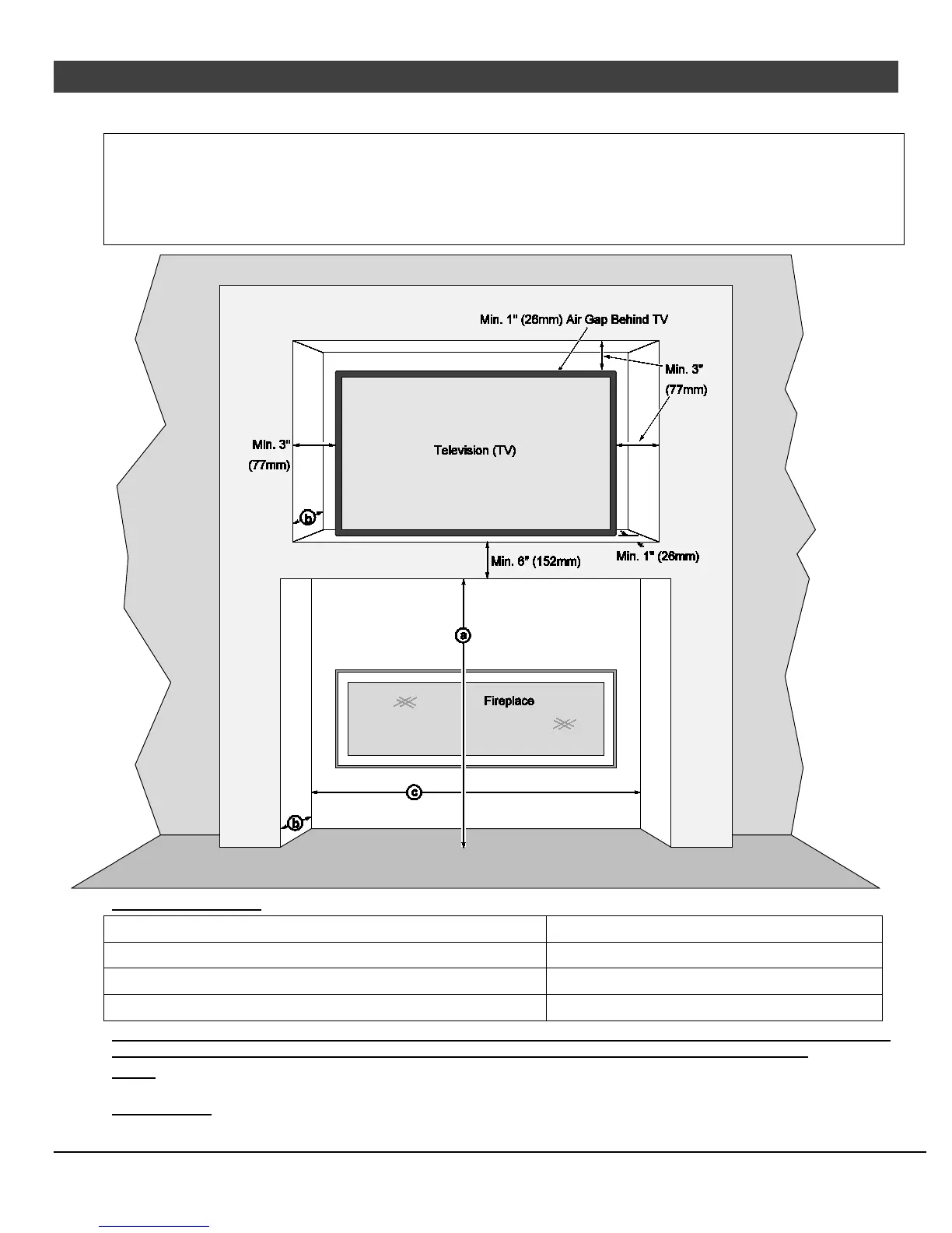 NOTE: The mantel must extend 1”(26mm) in front of the TV and 1”(26mm) to both sides. If you have a TV that is greater than