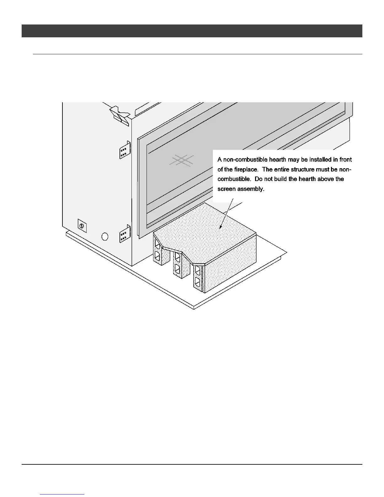• A non-combustible hearth may be constructed in front of the fireplace (see illustration below).
