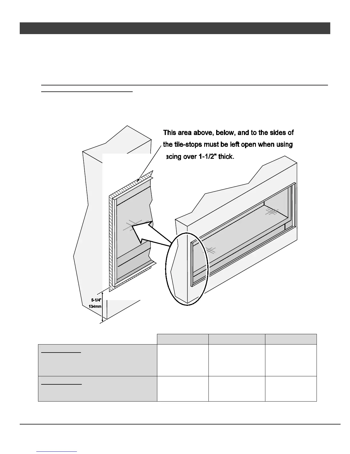 NOTE: Pay close attention to the following thick facing requirements when planning installation of facing
