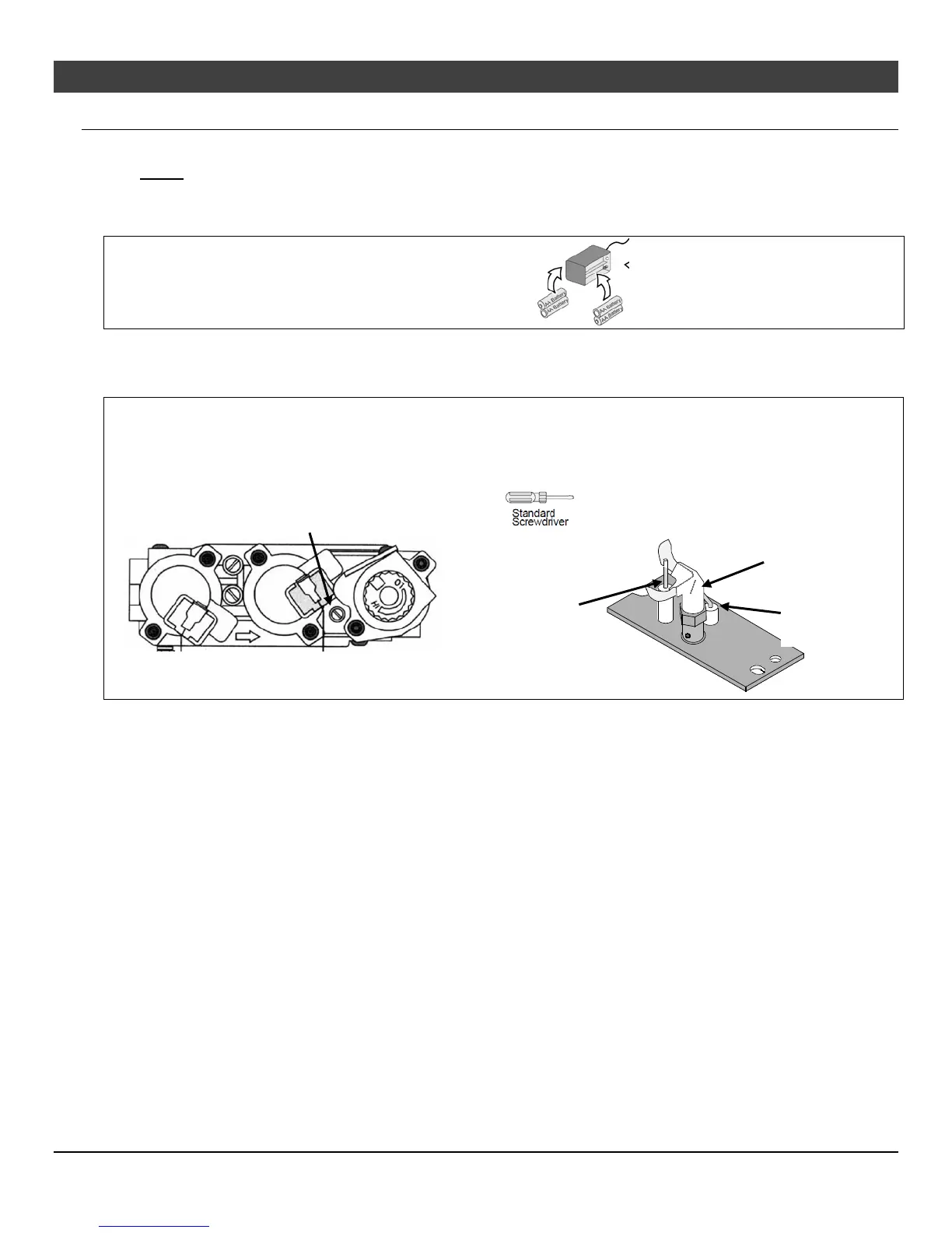 To adjust the pilot flame, turn this screw. Clockwise lowers