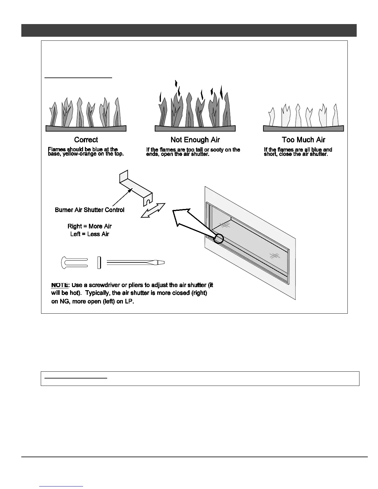yellow with no sooting. Adjust the air shutter, if necessary, to achieve the correct looking flame.