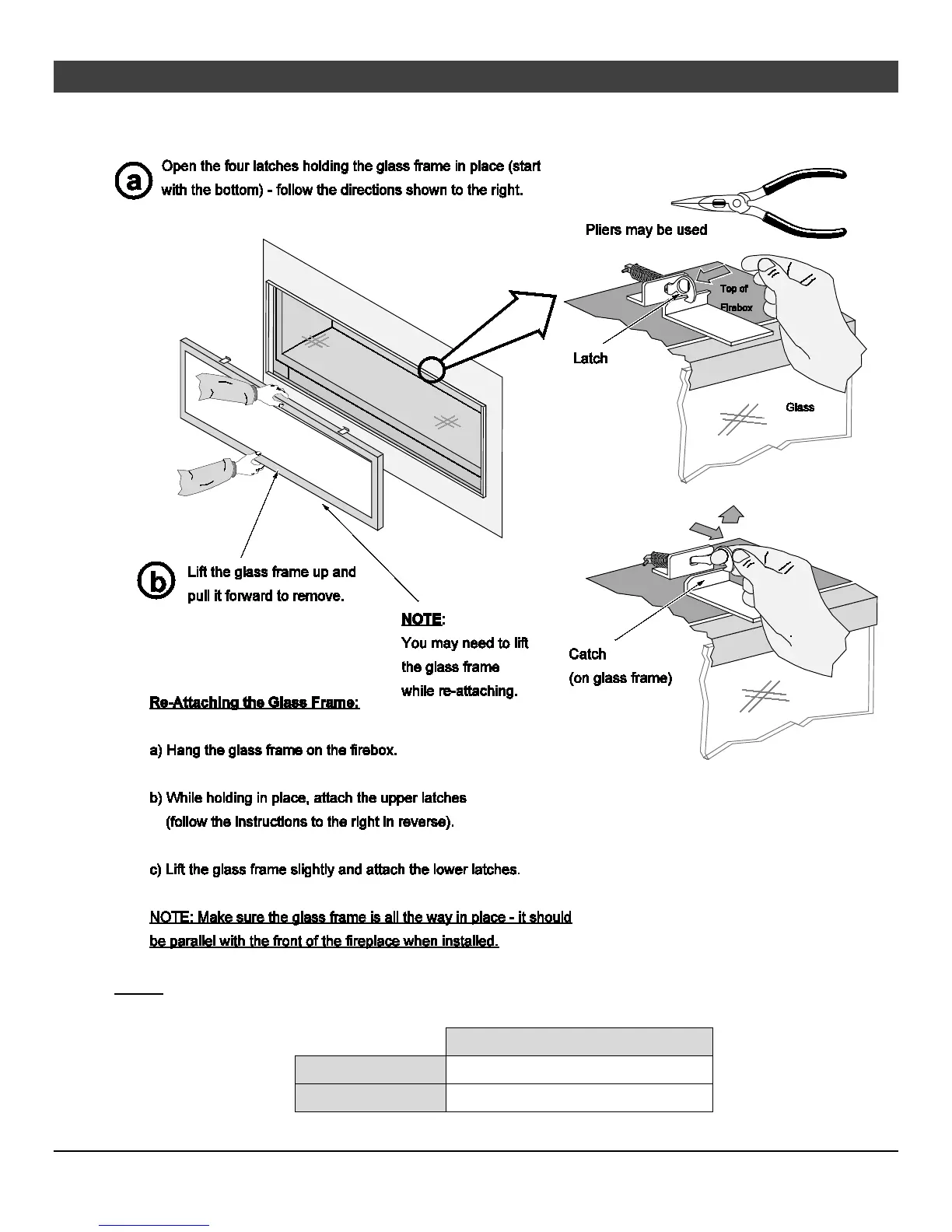 NOTE: Make sure the glass frame is all the way in place – It should be parallel with the front of the