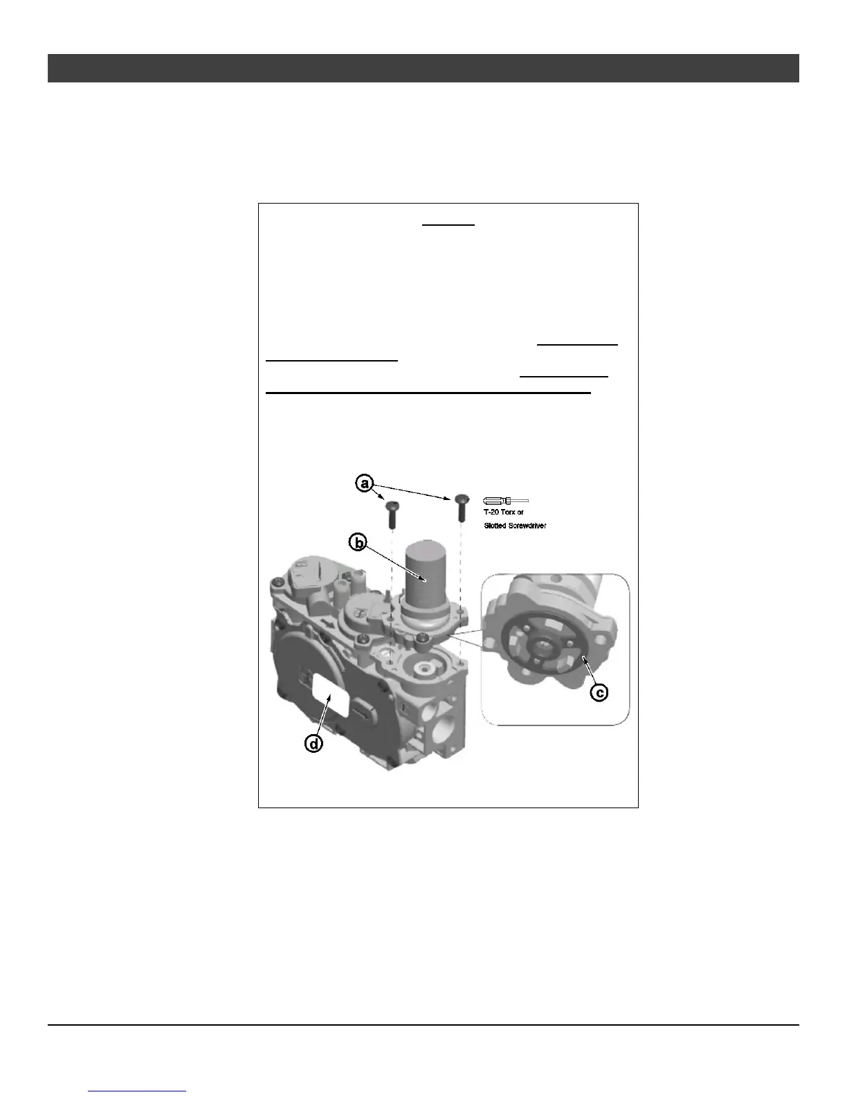 the propane regulator, using the new gasket and screws included with the regulator. Re-install the knob