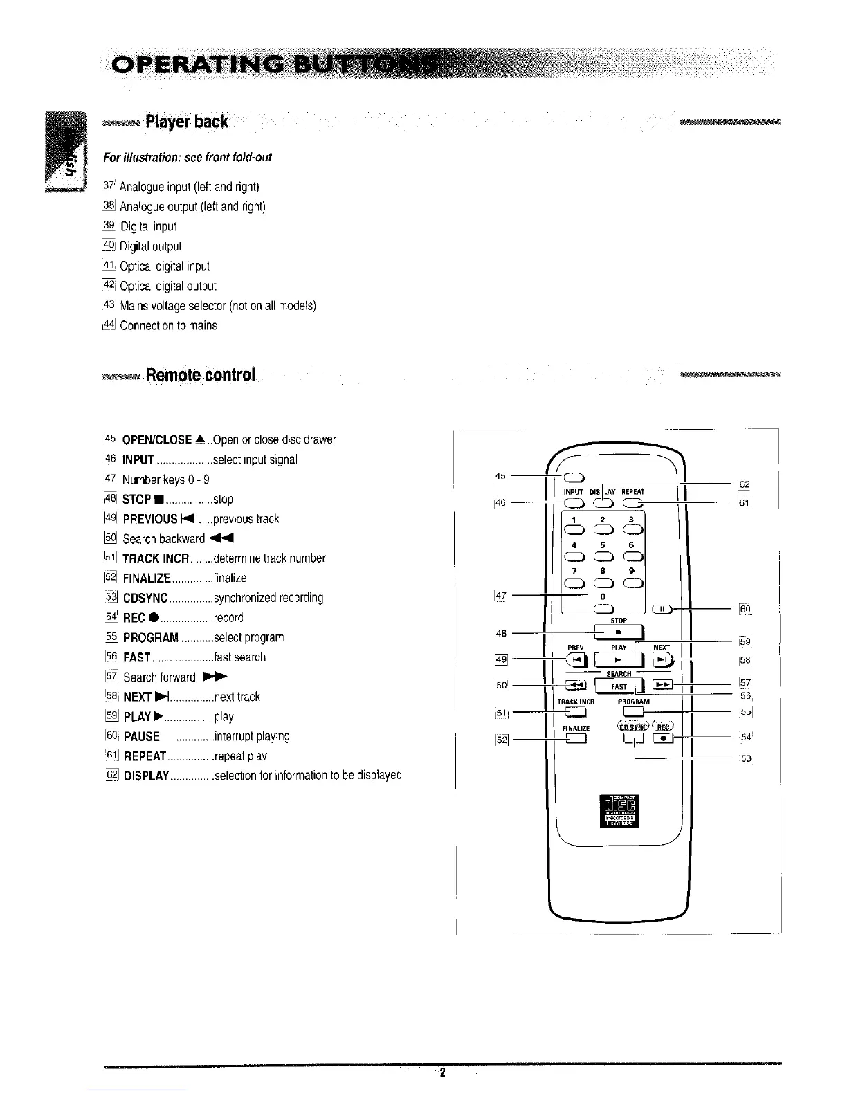 TraxData TraxAudio 900 - Operating Buttons - Remote Control; Rear Panel Connections