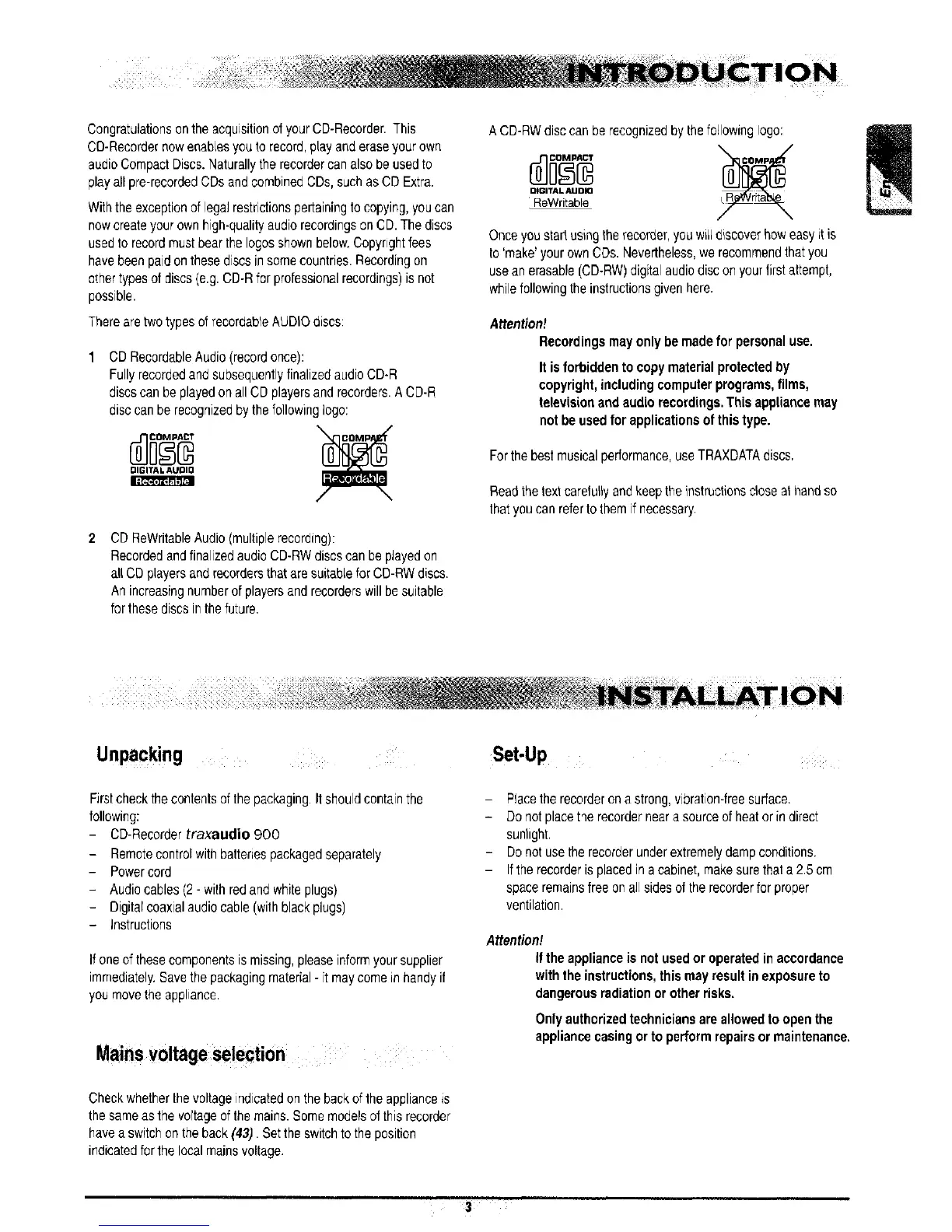 TraxData TraxAudio 900 - Introduction to CD Recording; Installation Guide