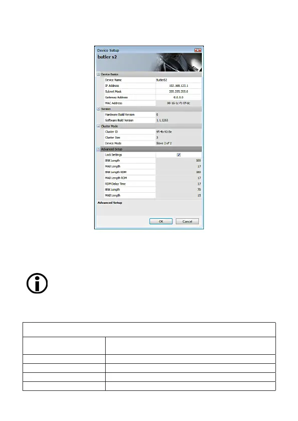 Subnet Mask The netmask of the device (Default: 255.255.255.0)