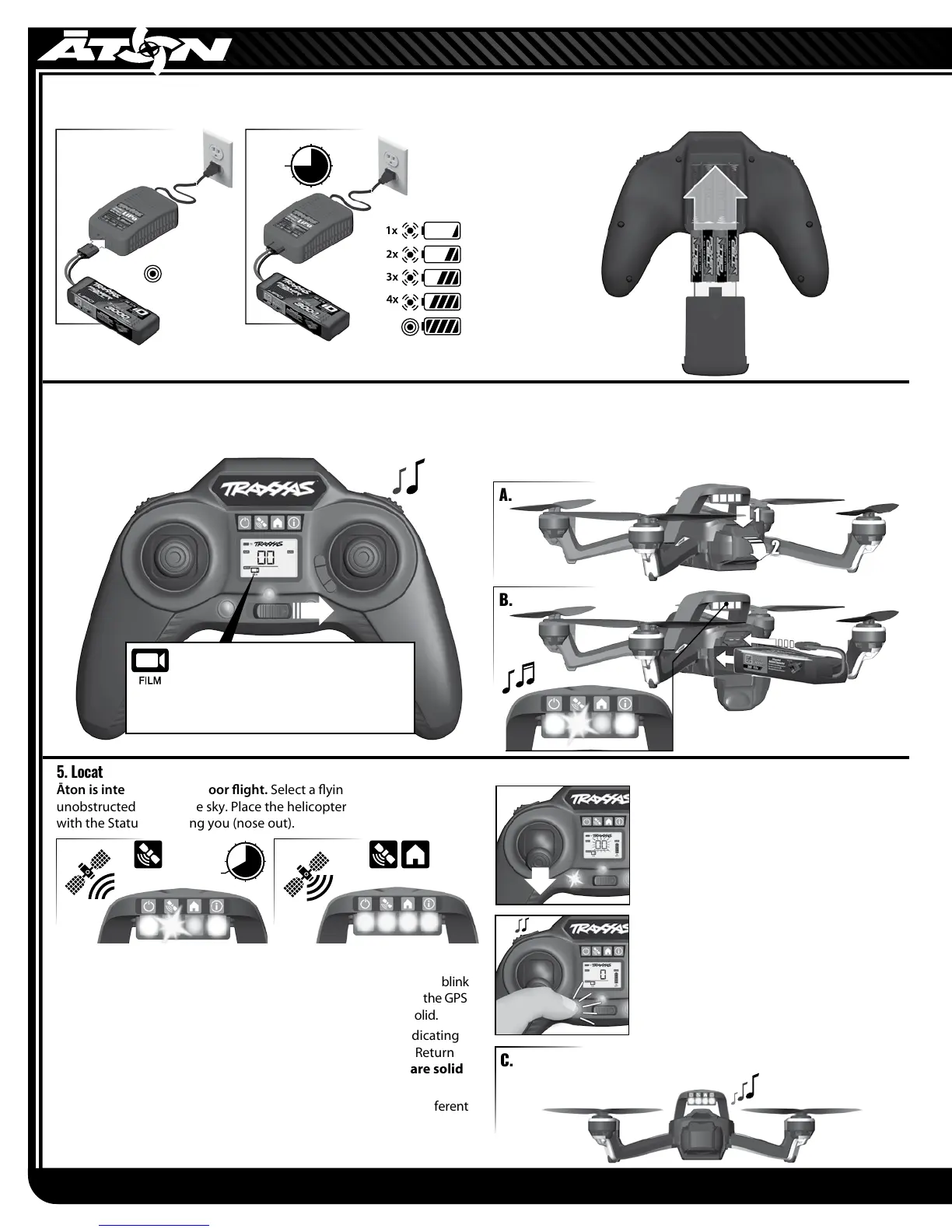 the helicopter will glow solid. The GPS Status LED will blink slowly (B).