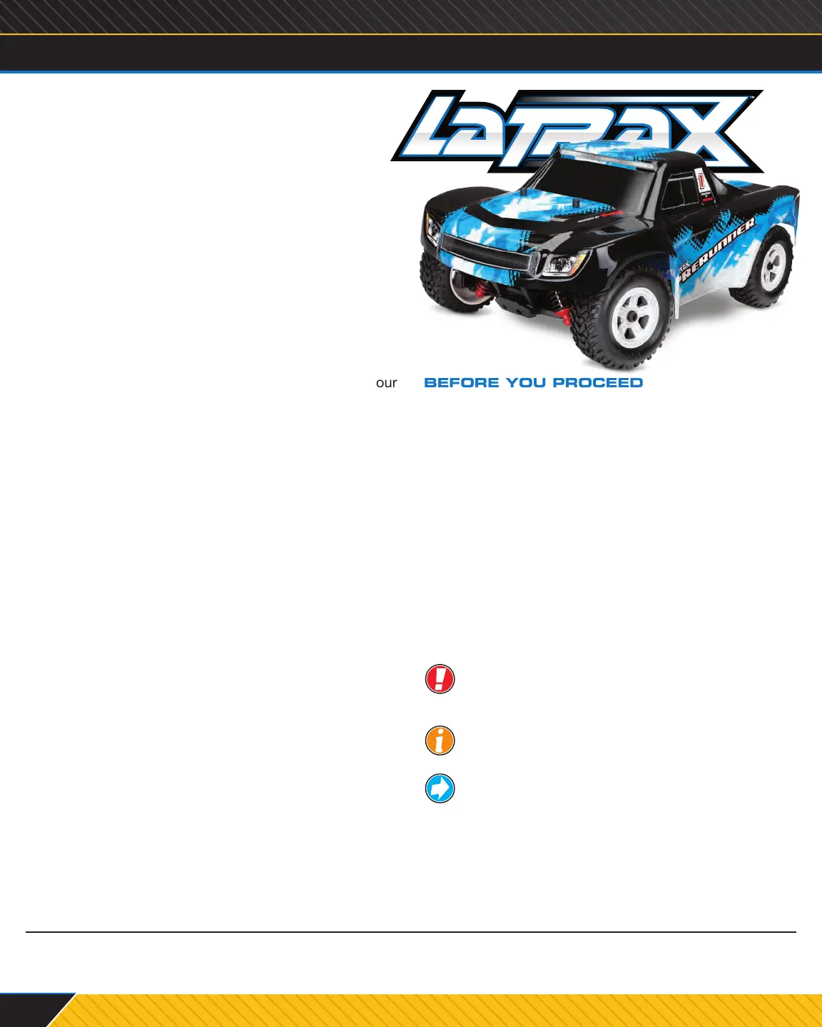 in print or electronic media without the express written permission of LaTrax. The product may vary from the images contained within.