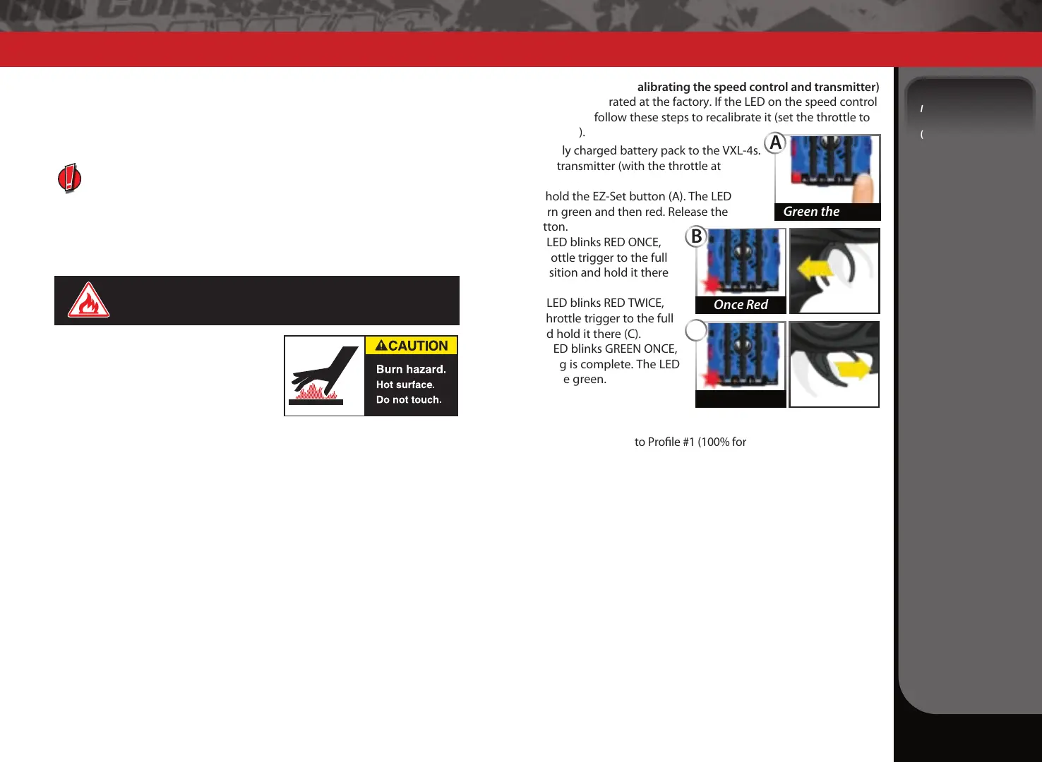 is flashing green, then follow these steps to recalibrate it (set the throttle to