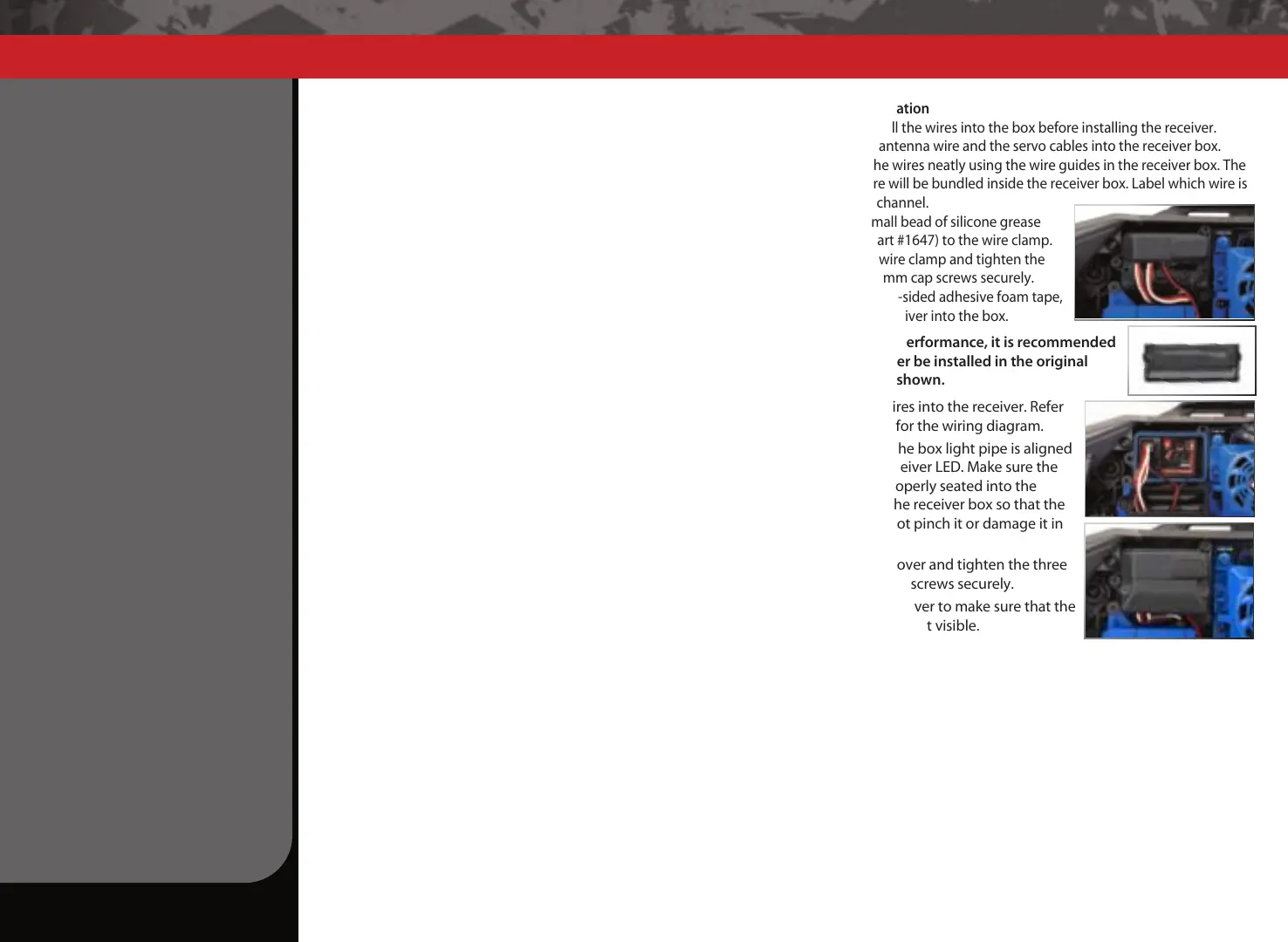 2. Install the antenna wire and the servo cables into the receiver box.