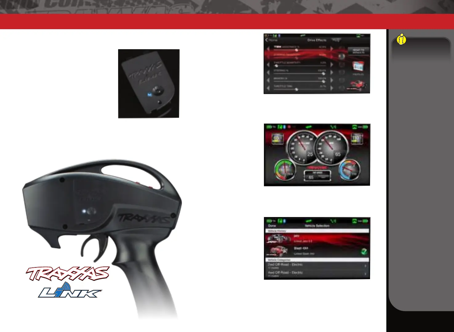 Traxxas Link telemetry sensors on the model, and Traxxas Link displays