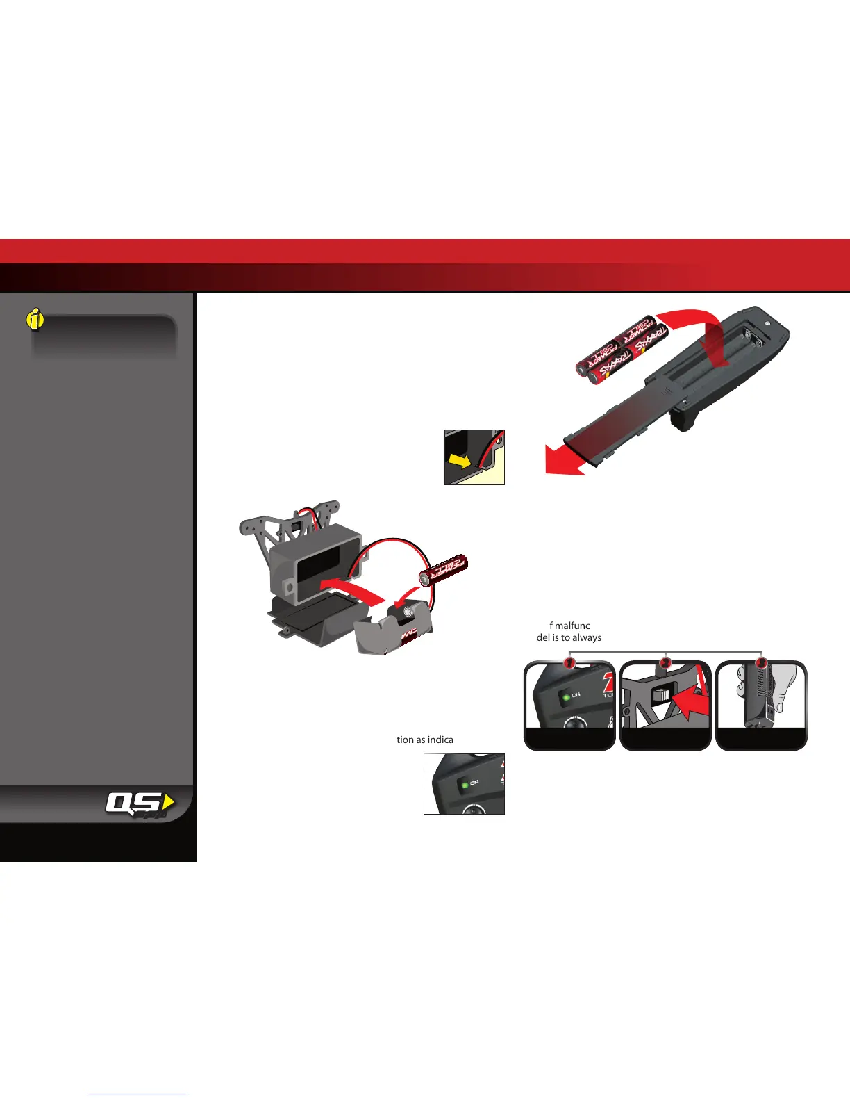 • Always turn your TQ 2.4GHz transmitter on first and off last. This