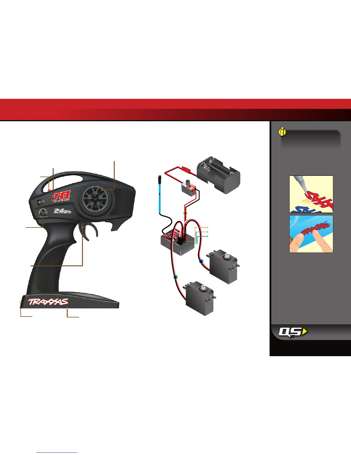 Your model is equipped with the Traxxas TQ 2.4GHz transmitter. The transmitter has two channels: Channel one operates the steering,