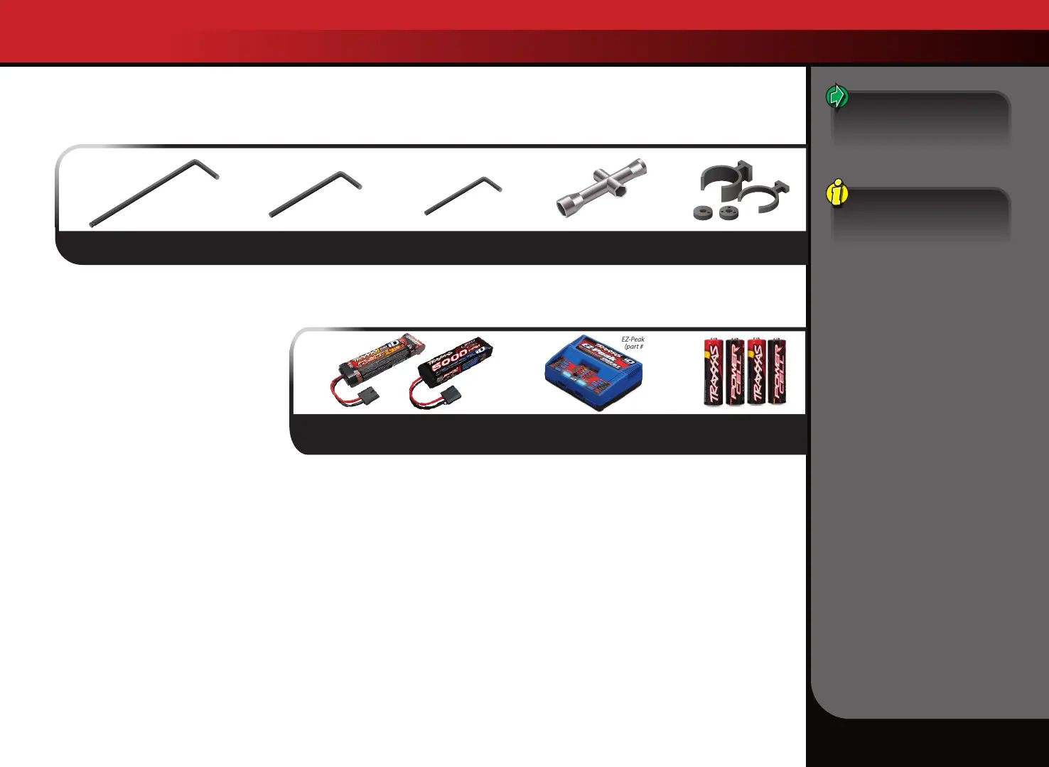Your model comes with a set of specialty metric tools. You’ll need to purchase other items, available from your hobby dealer, to operate and