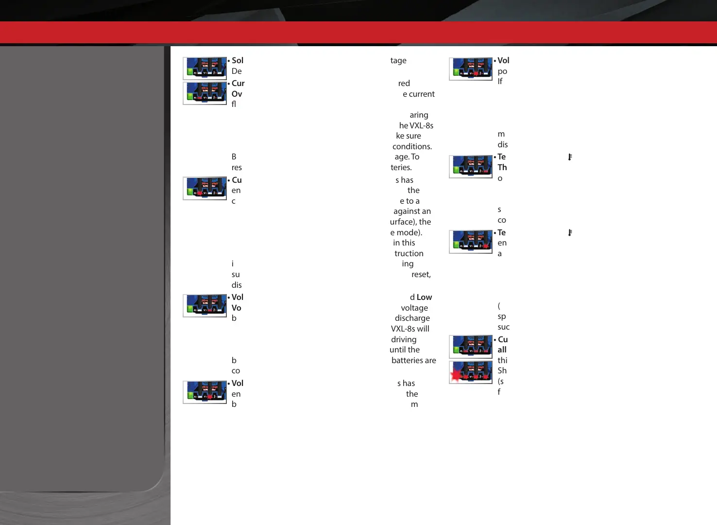 • Voltage LED (V) Solid Red: The VXL-8s has entered Low