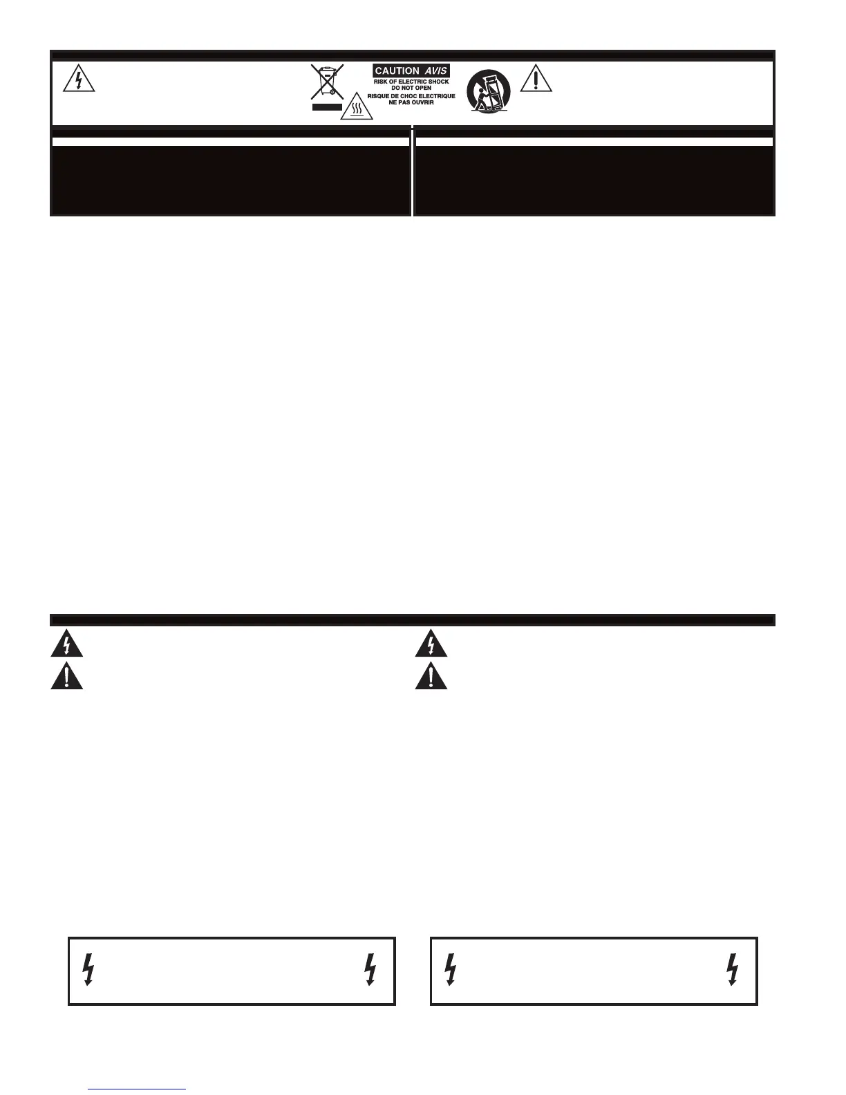 AVIS: AFIN DE REDUIRE LES RISQUE DE CHOC ELECTRIQUE, N’ENLEVEZ PAS LE COUVERT