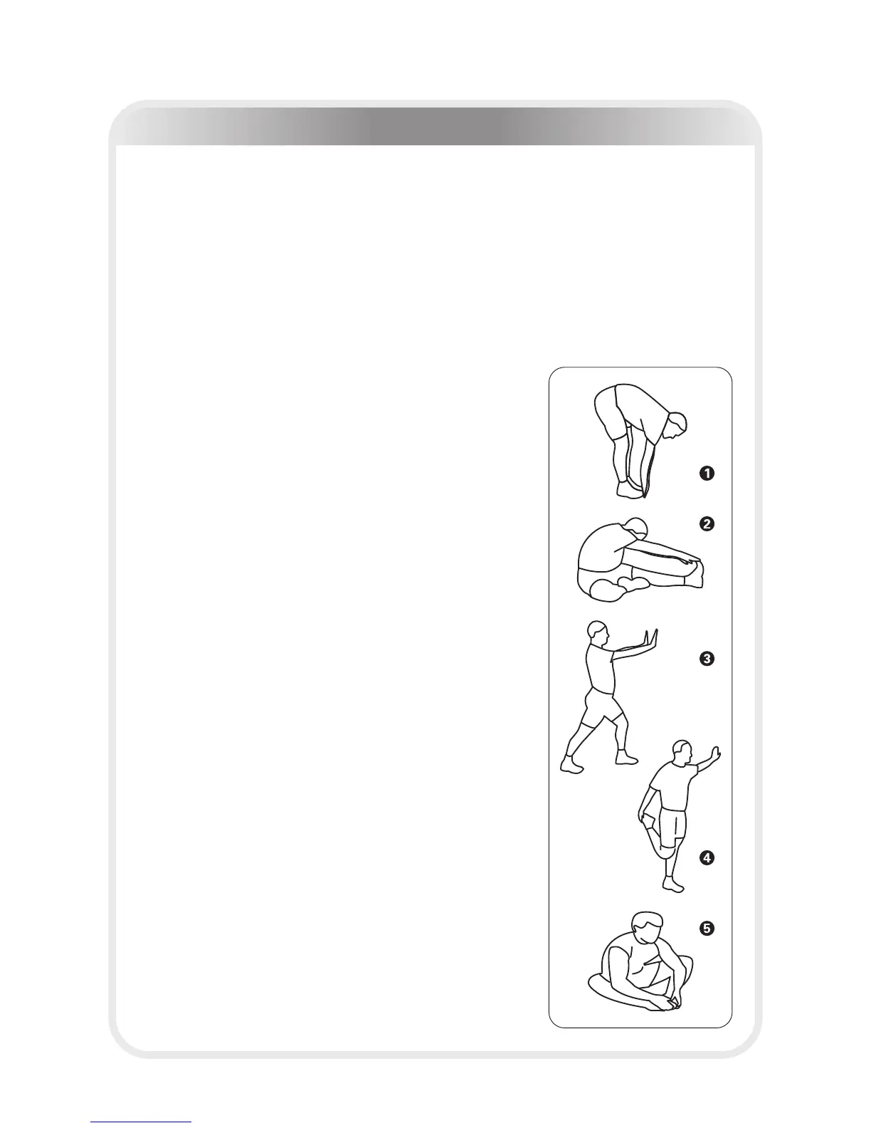 minutes of stretching and light exercise to warm up. The photos on this page show