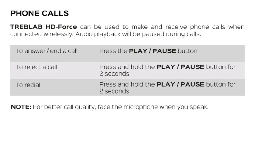 TREBLAB HD-Force - Advanced Features and Operations; Phone Call Management