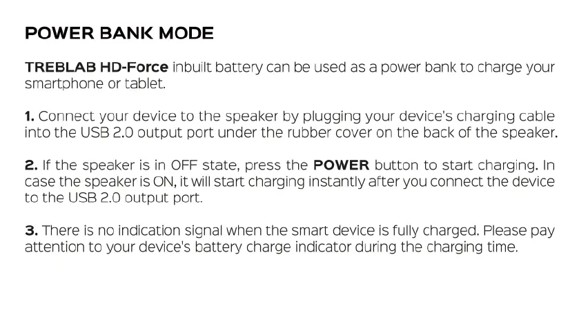 TREBLAB HD-Force - Using Power Bank Mode