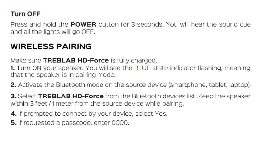 TREBLAB HD-Force - Wireless Connectivity; Bluetooth Pairing and Reconnecting